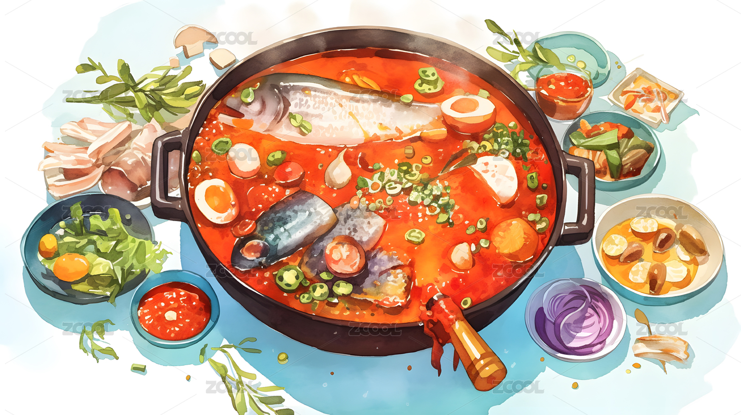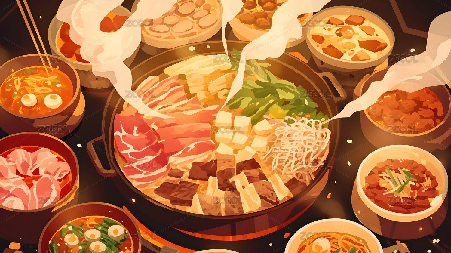 春节团圆年夜饭火锅国潮食物节日美食插画