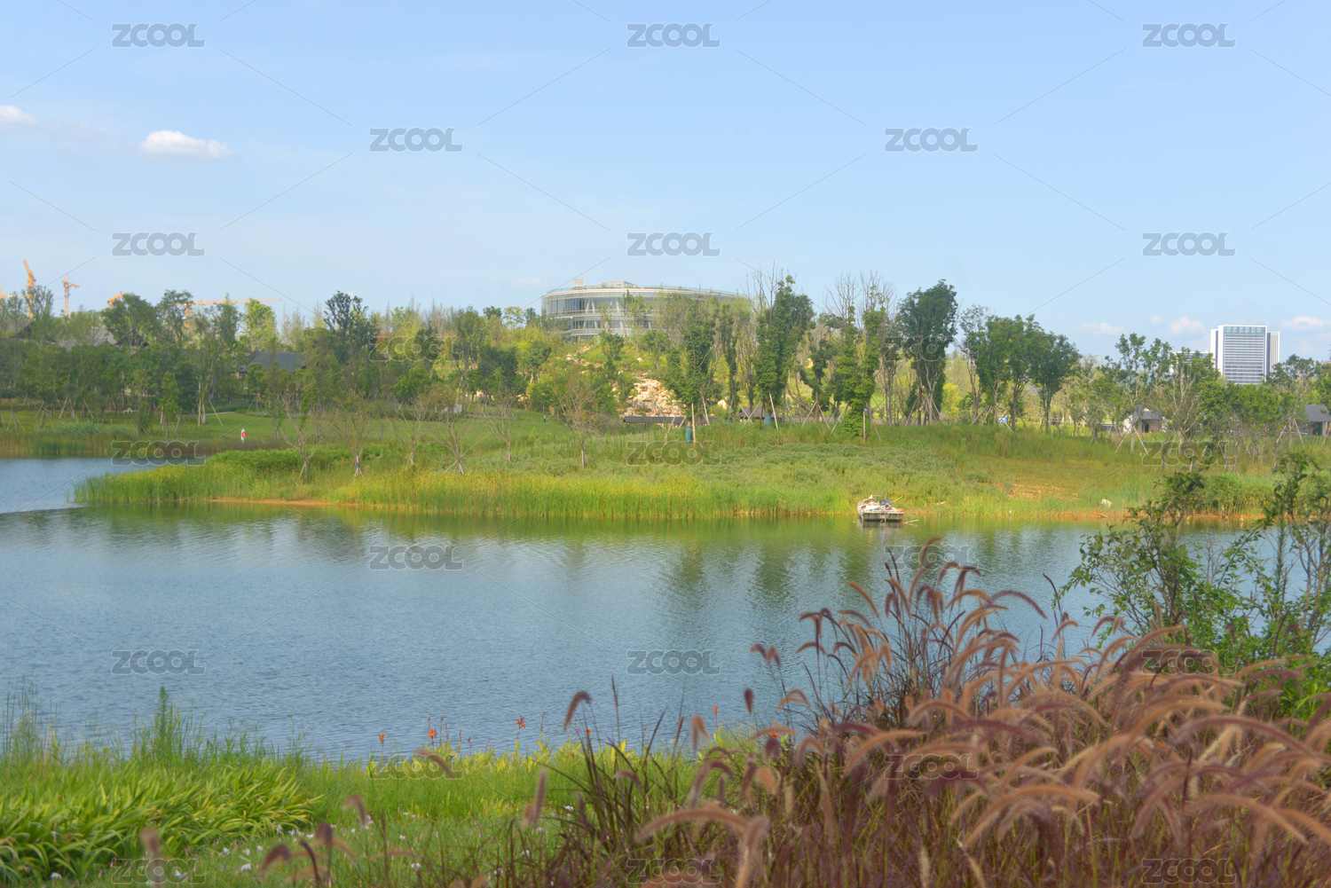 成都锦城湖公园生态绿化湖景风景