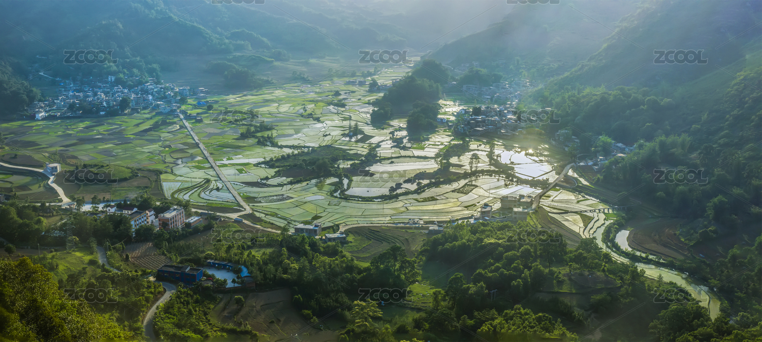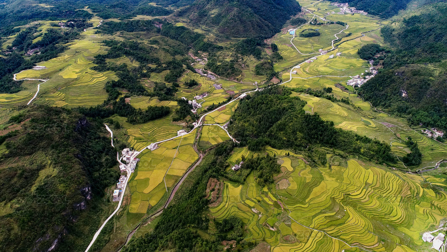 中国,云南,保山市,龙江乡,绿色,稻田,田野,生态,鸟瞰,梯田