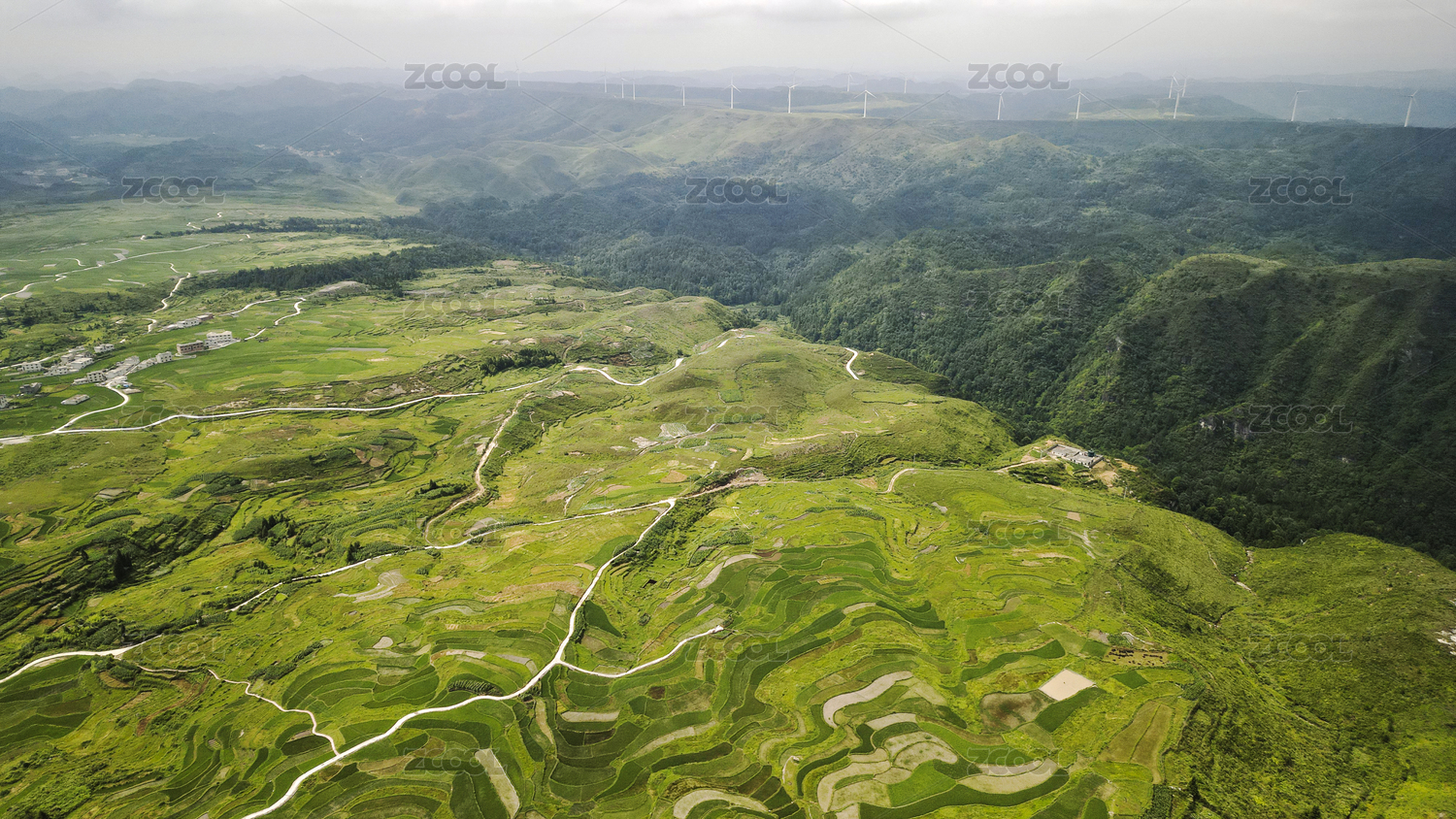 贵州贵阳云顶高坡风景风车航拍