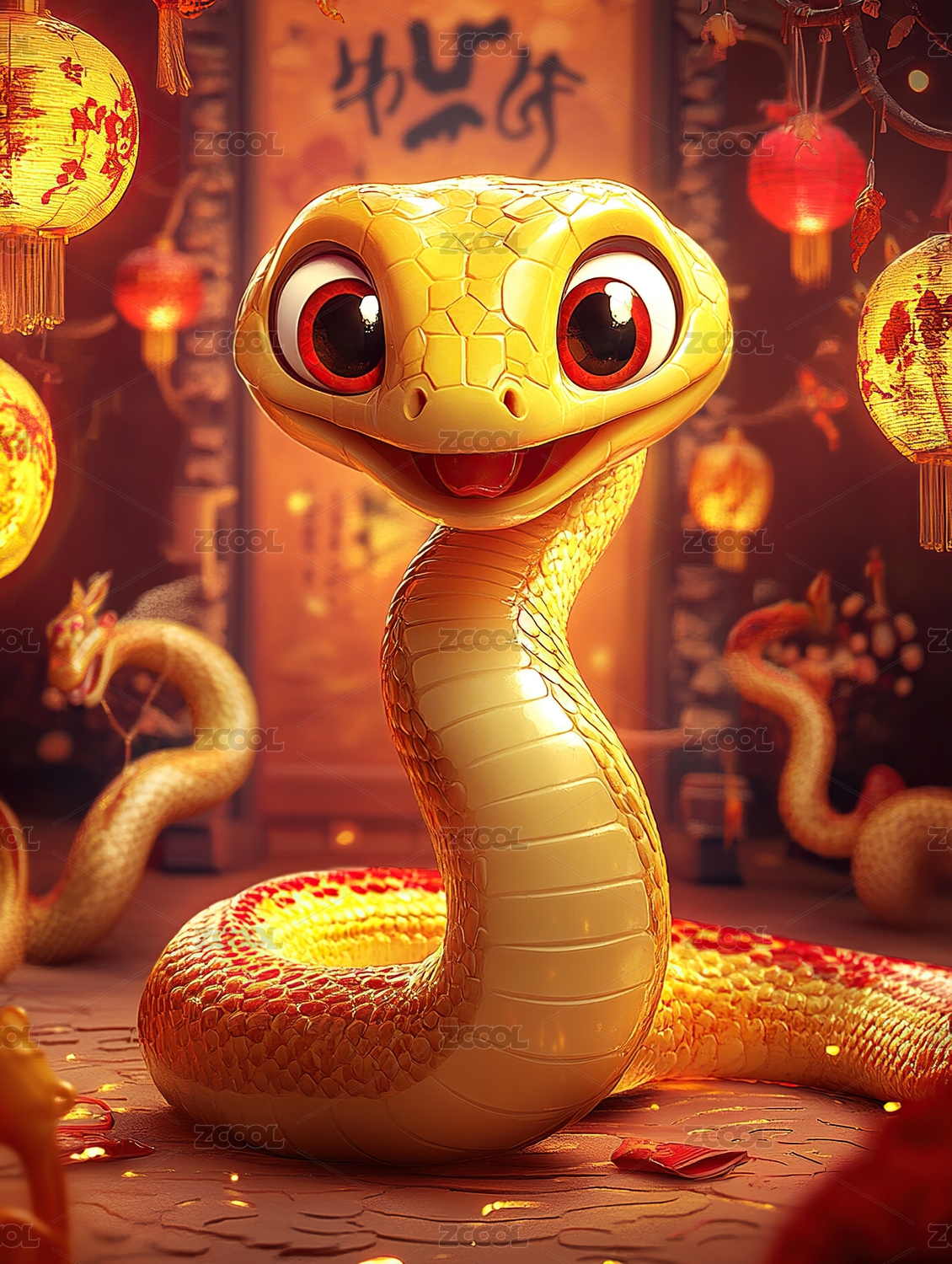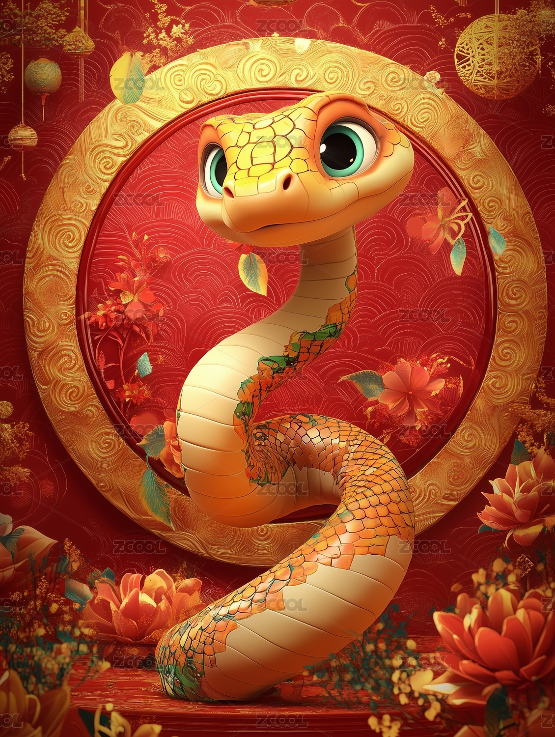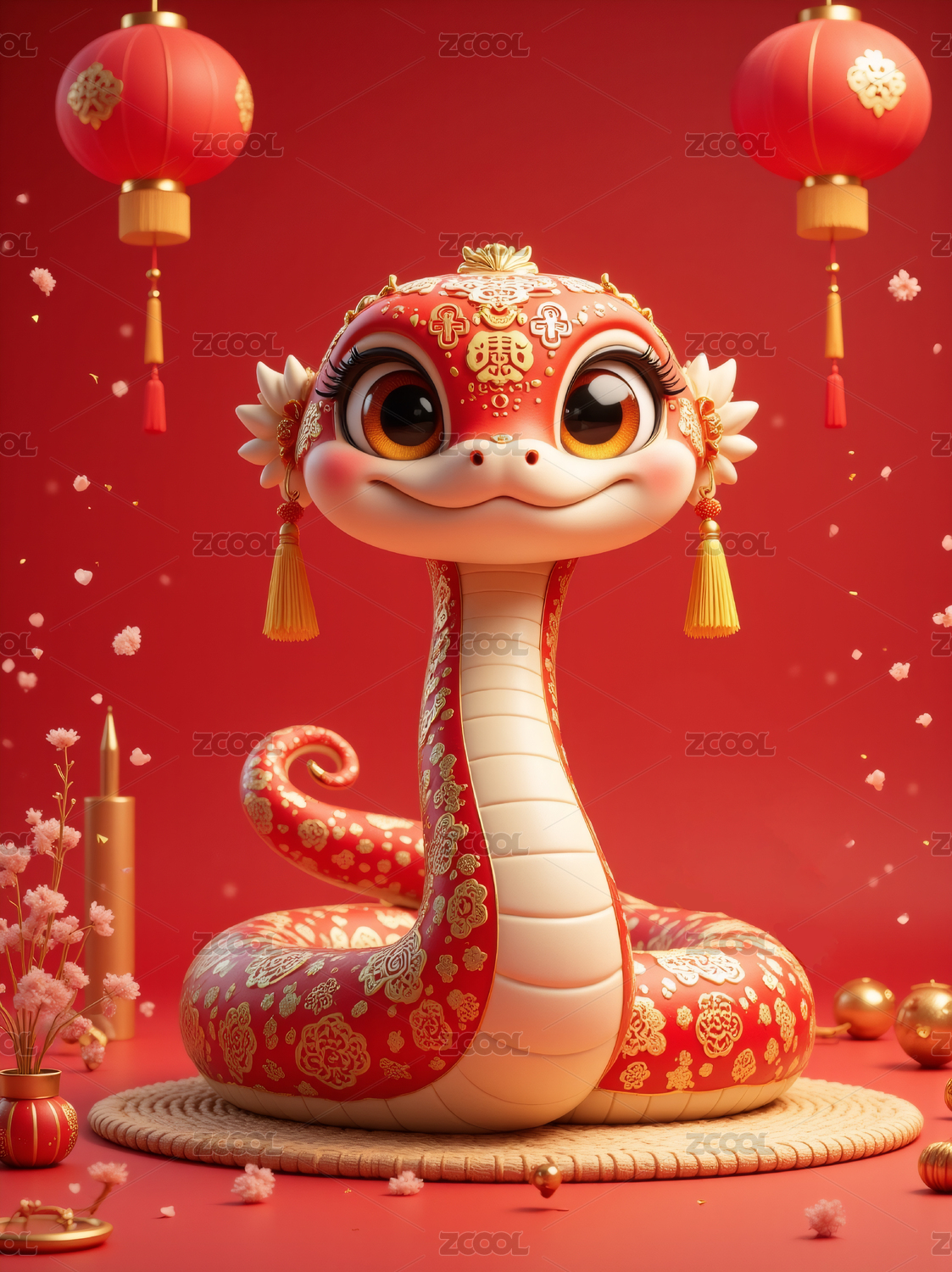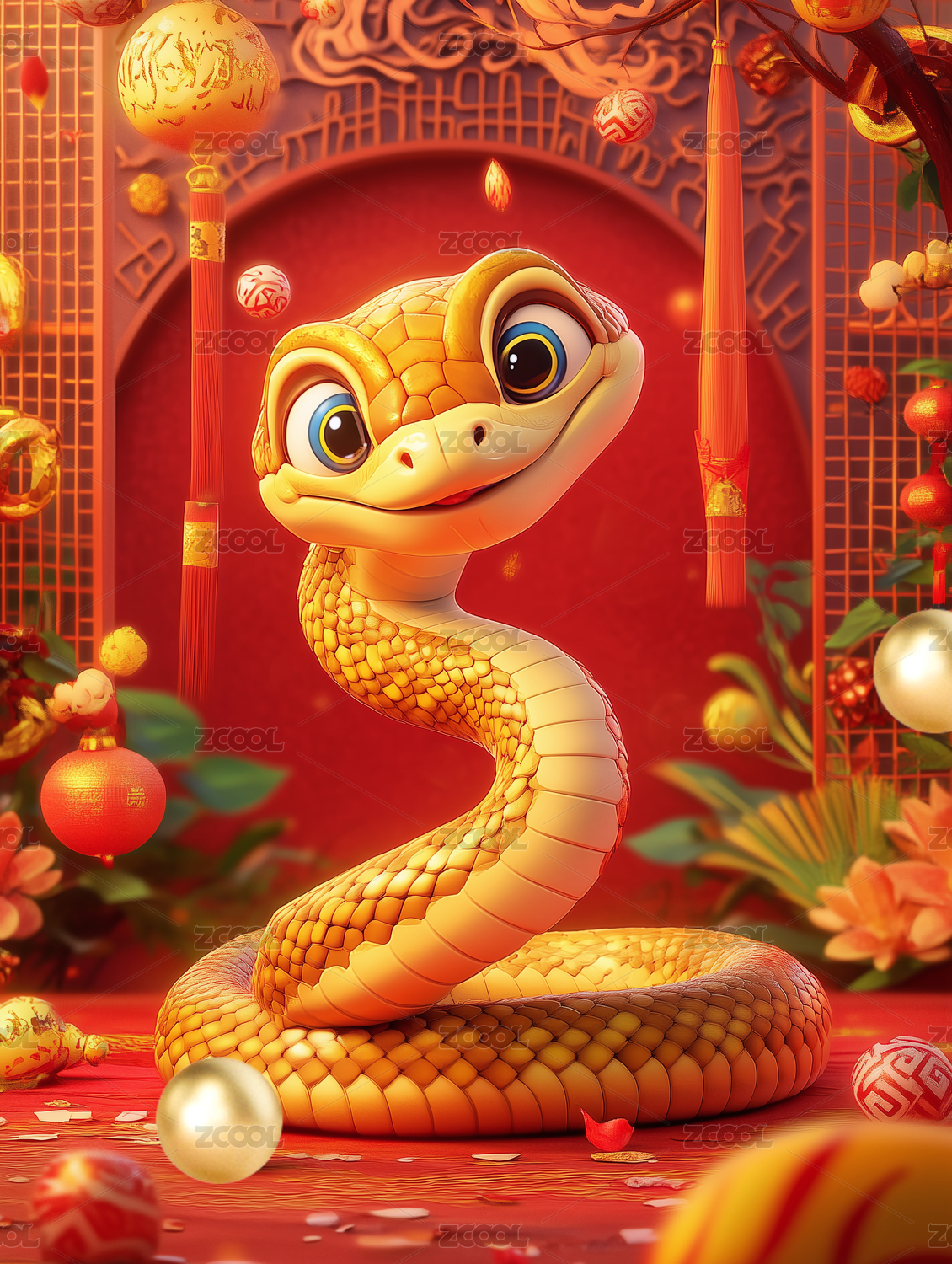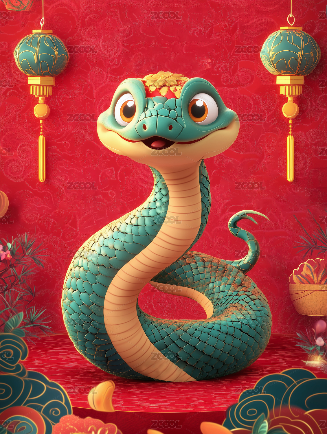 蛇,蛇年,动物,12生肖,卡通,2025年,可爱,插画