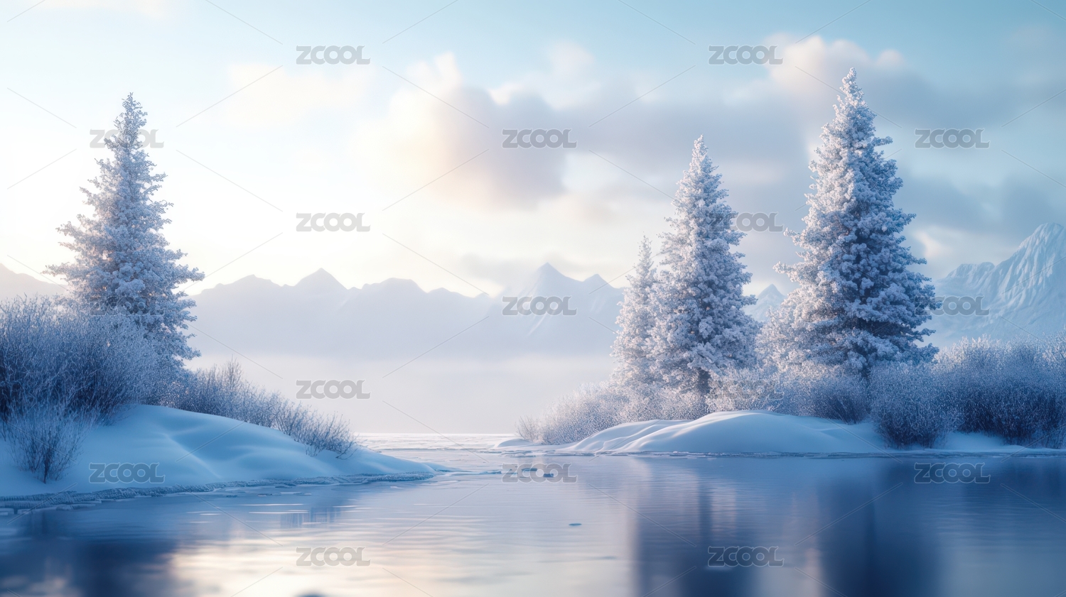 冬日雪景静谧河流