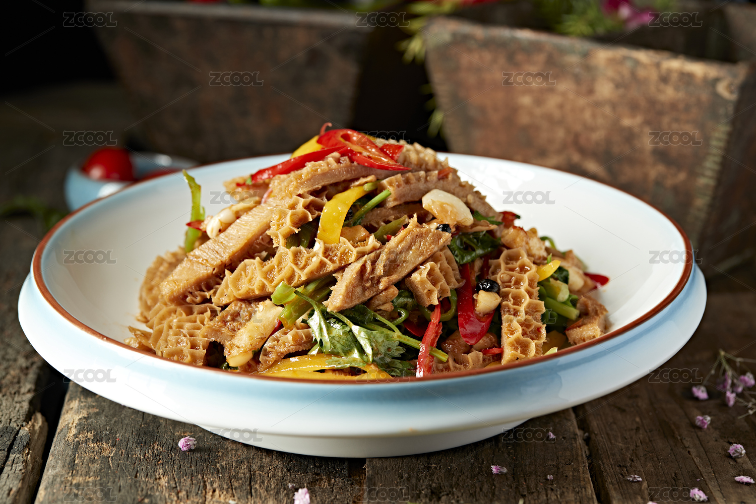 香辣彩椒蒜香金钱肚