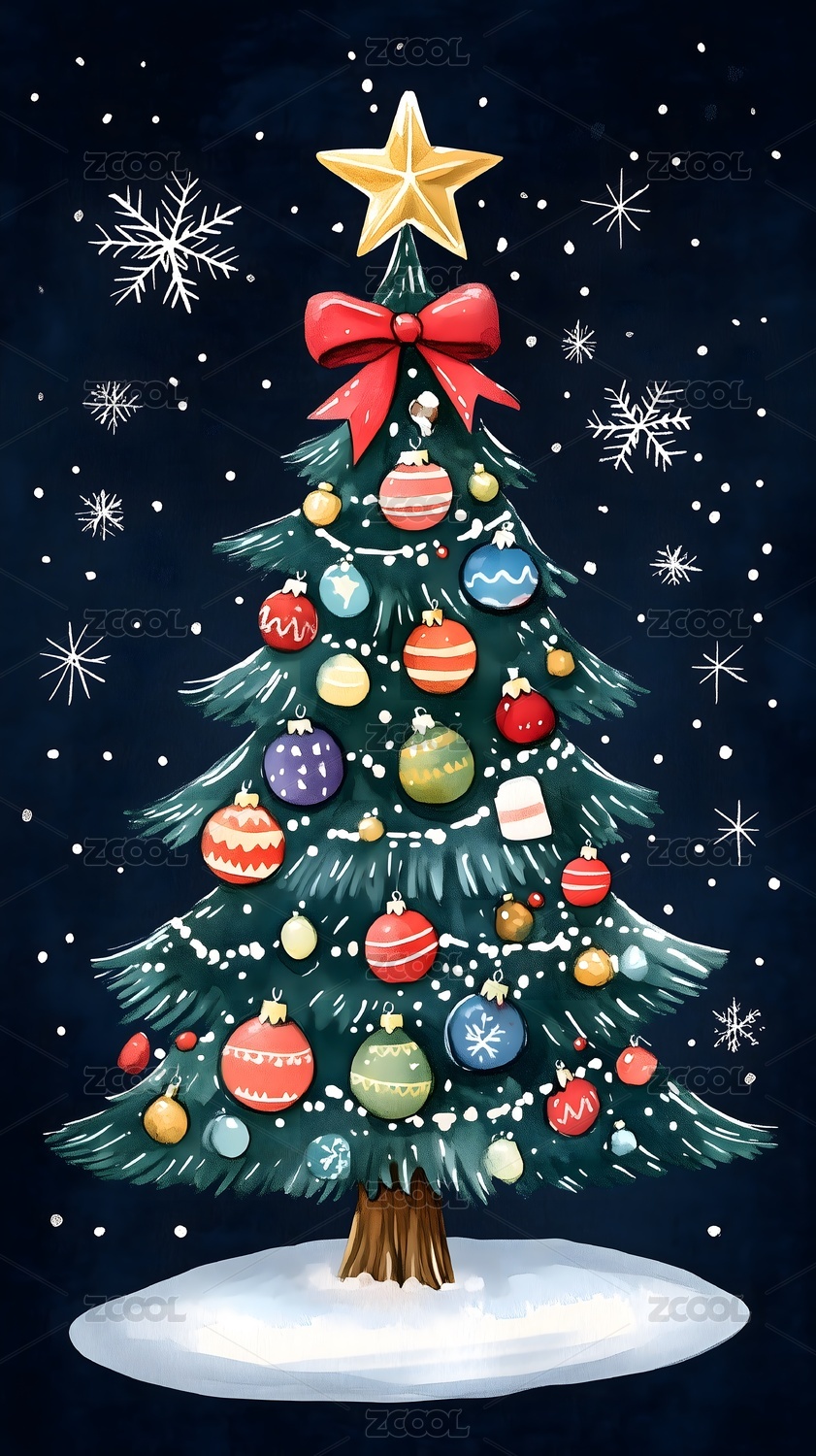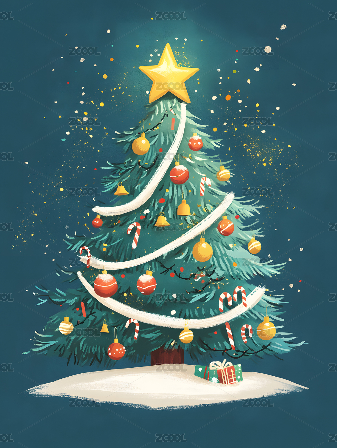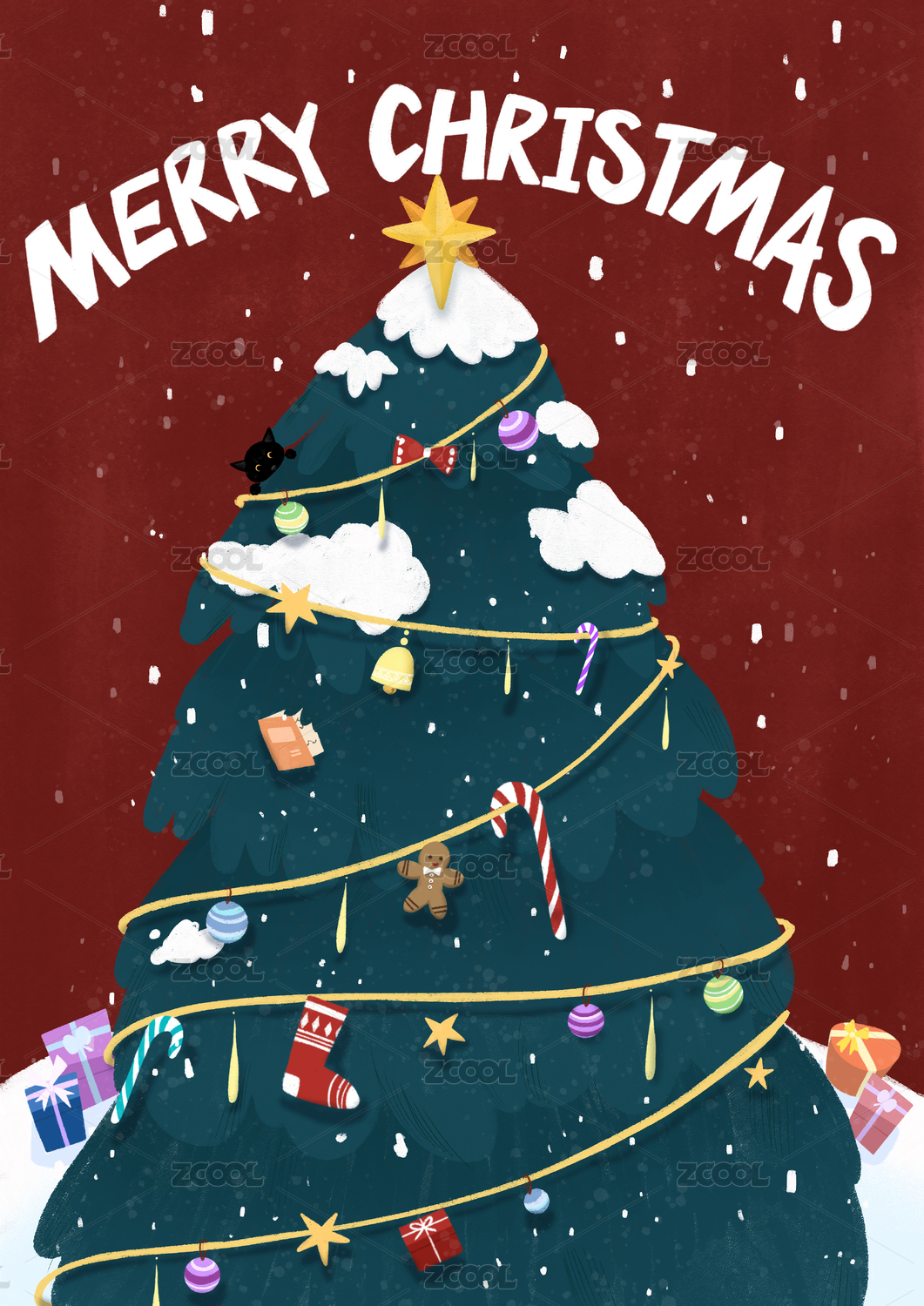 圣诞,圣诞节,圣诞老人,音乐会,礼物,猫咪,雪人,节日,插画,圣诞树