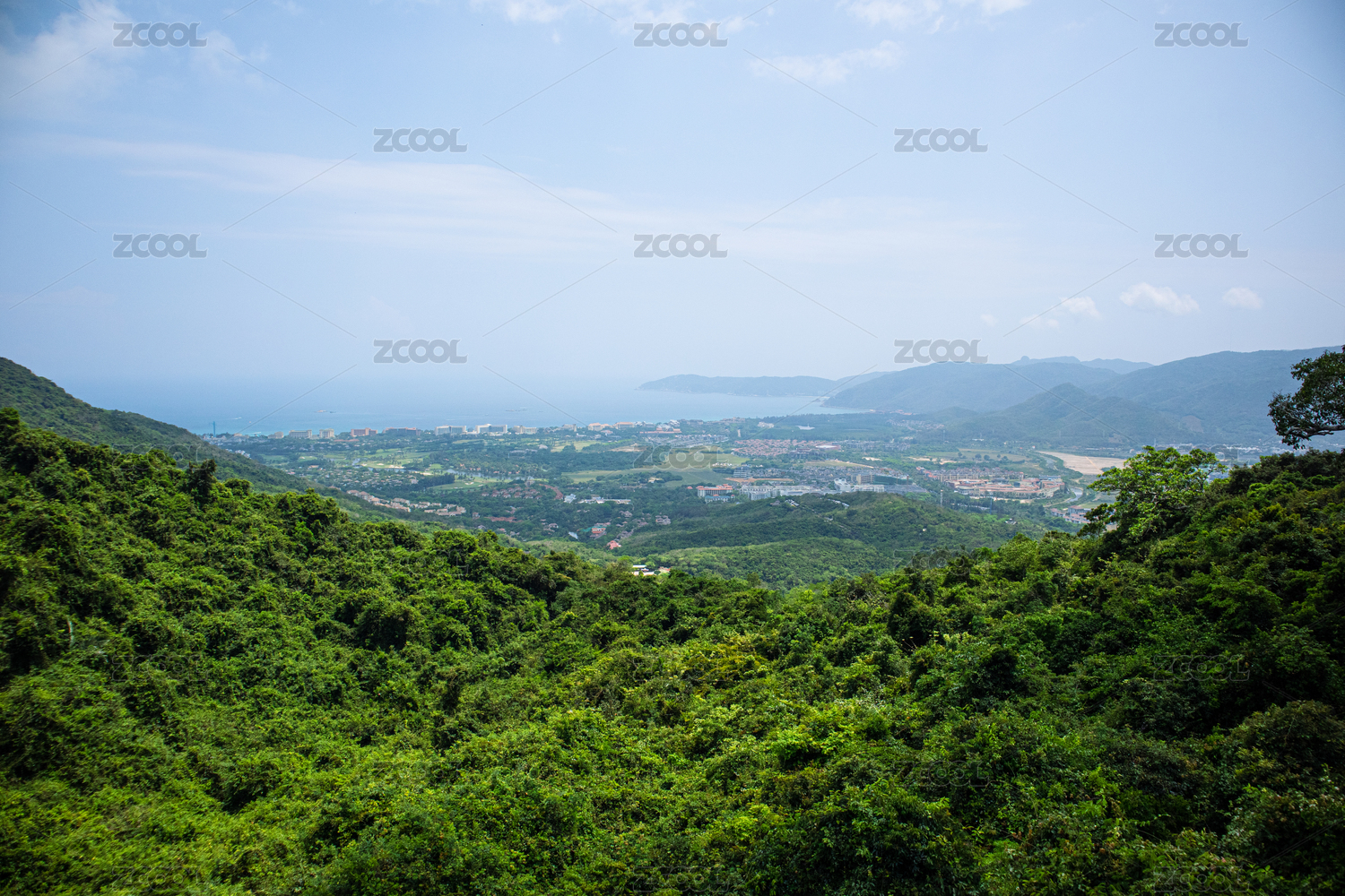 海南山崖亚龙湾热带深林公园山顶俯瞰城市