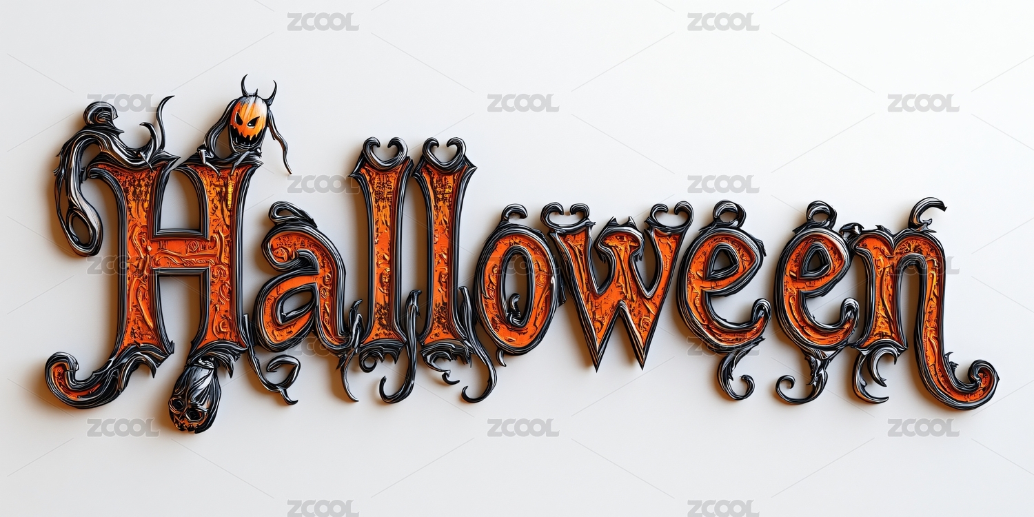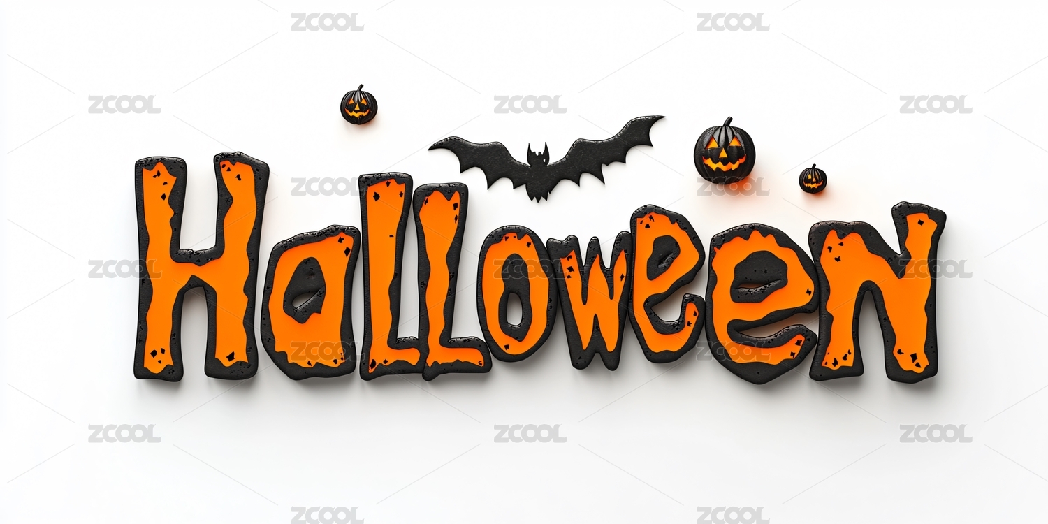 万圣节,南瓜灯,蝙蝠,橙色,黑色,蜘蛛网,Halloween,字体,艺术字,卡通