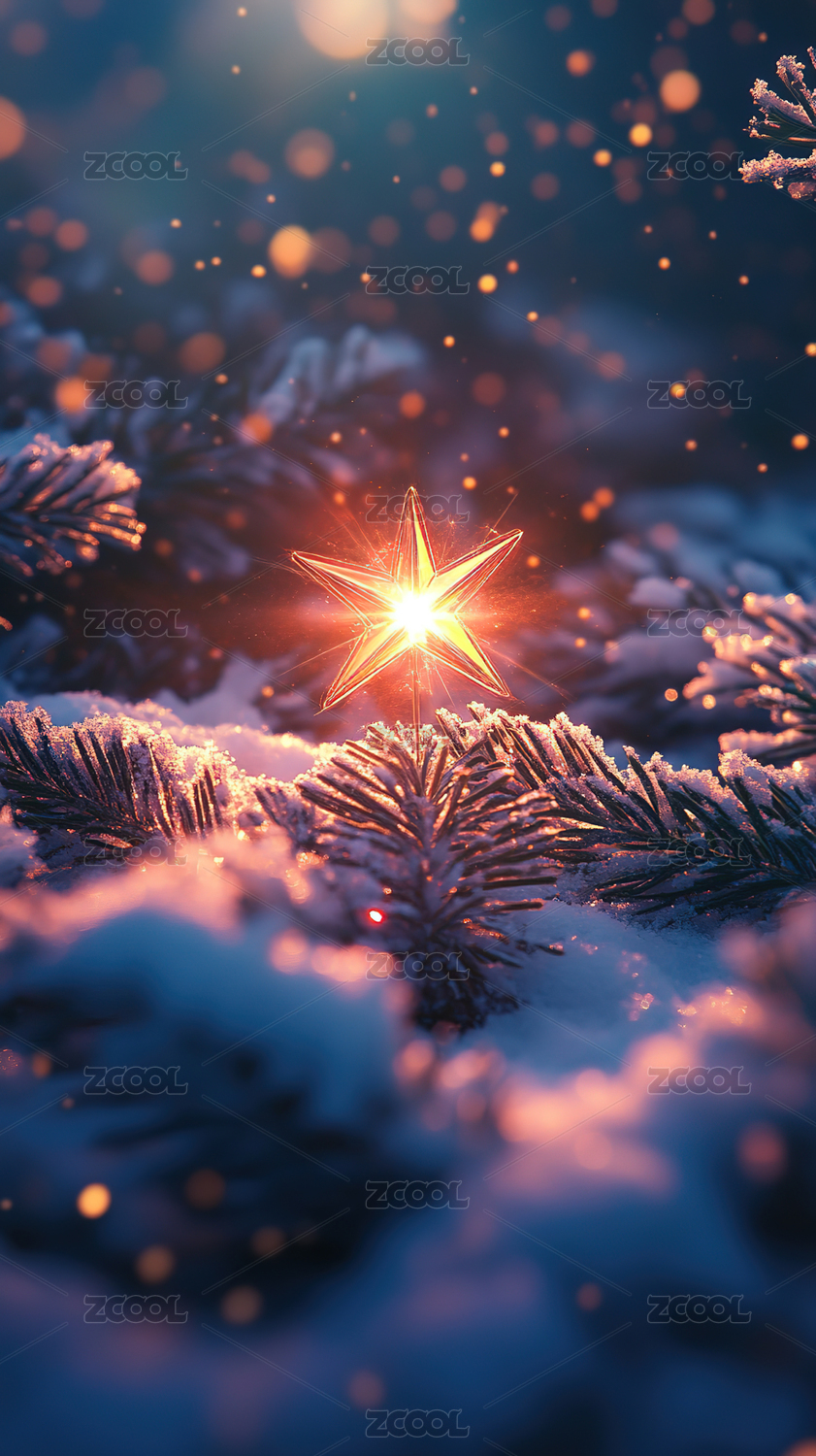 梦幻冬日雪景中的圣诞装饰主题壁纸