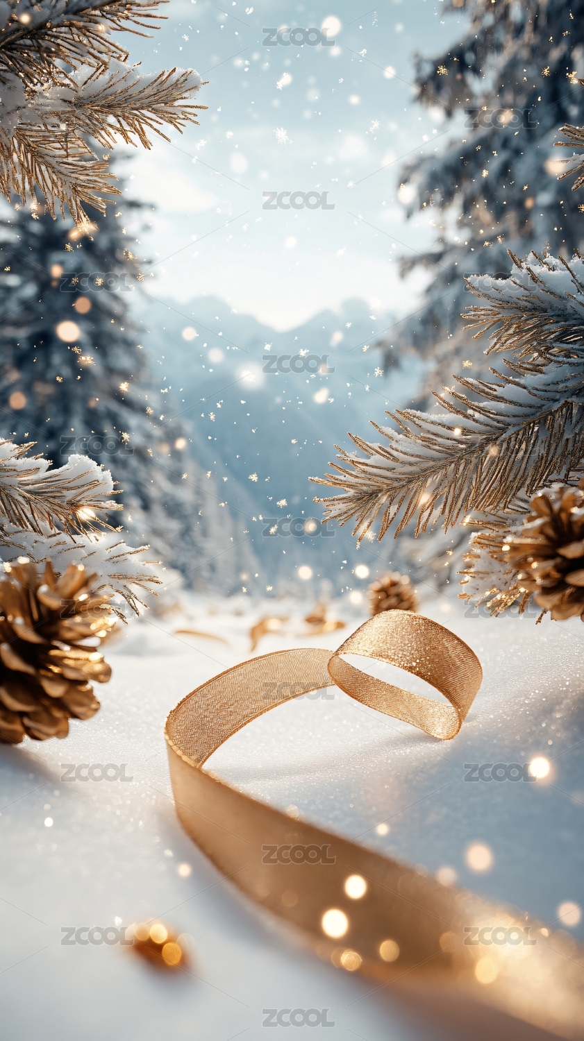 圣诞节冬日雪景圣诞树圣诞礼物电商背景