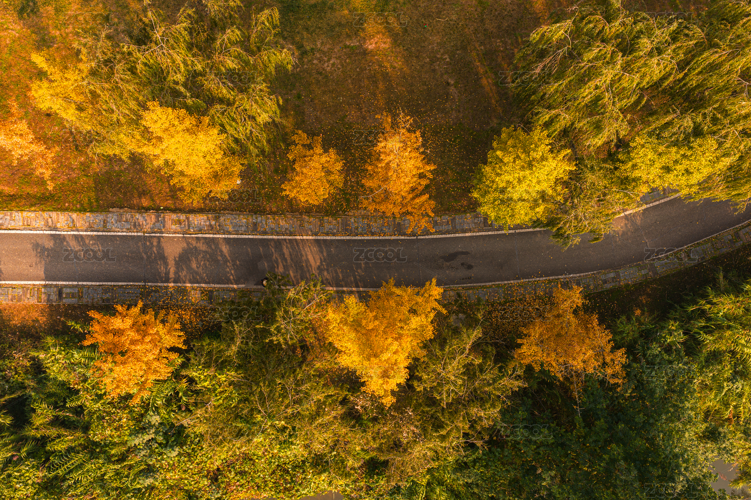 中国四川成都白鹭湾湿地公园秋色航拍图