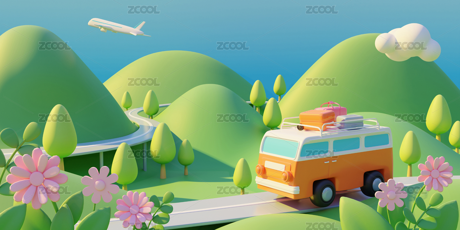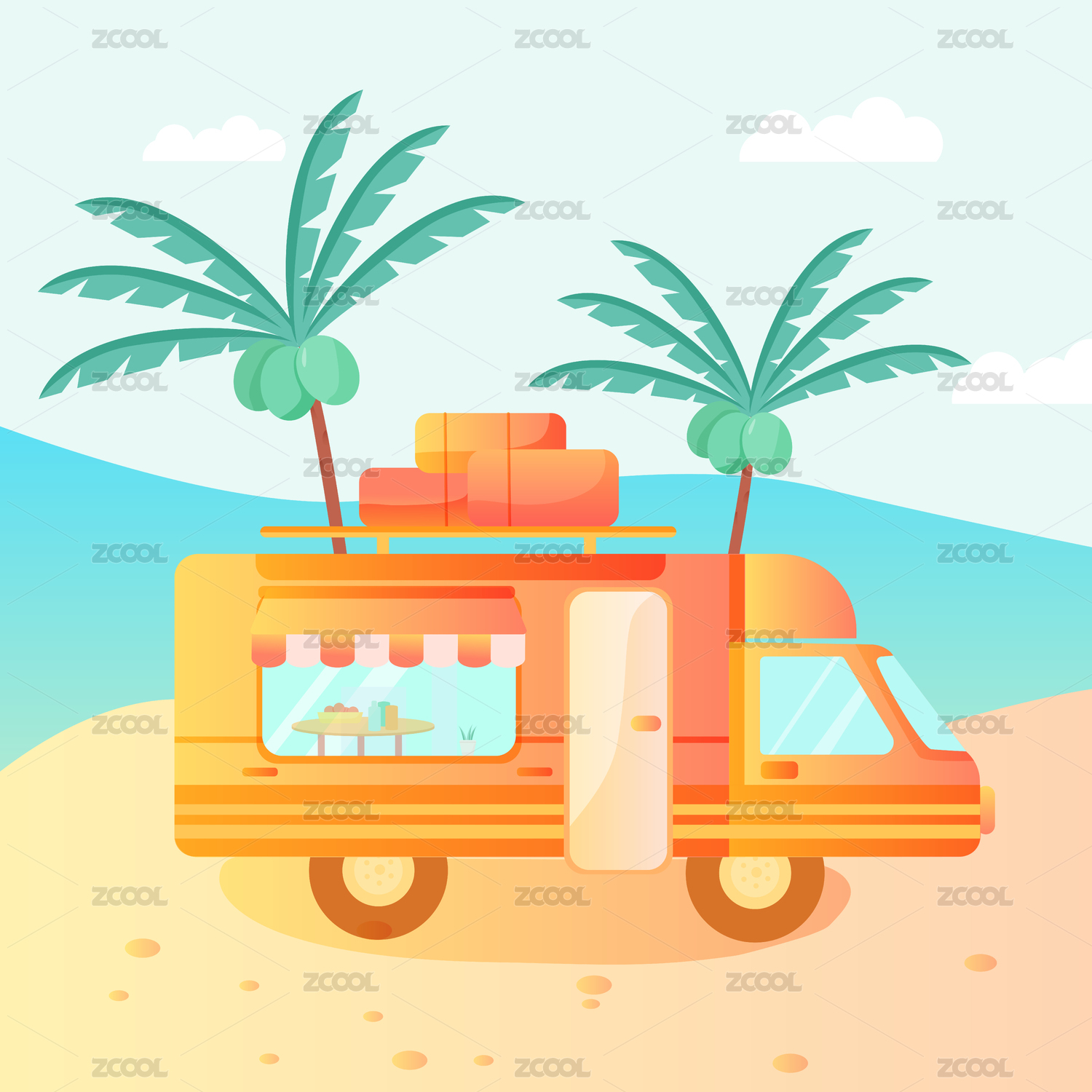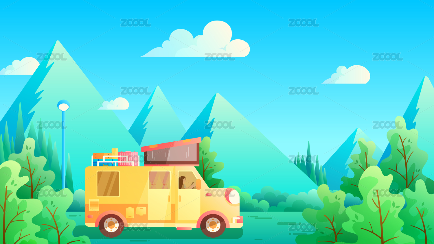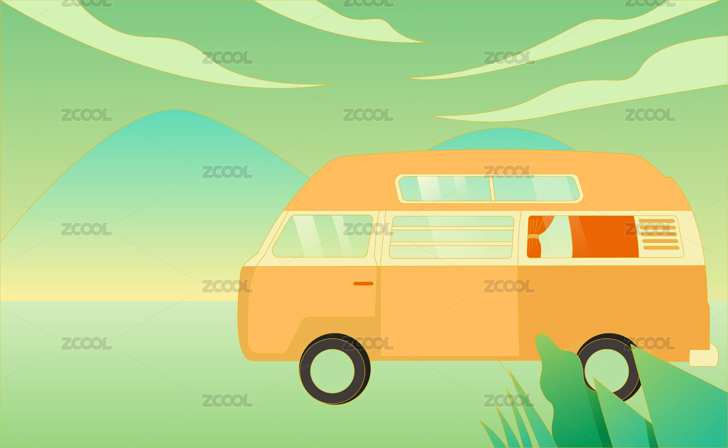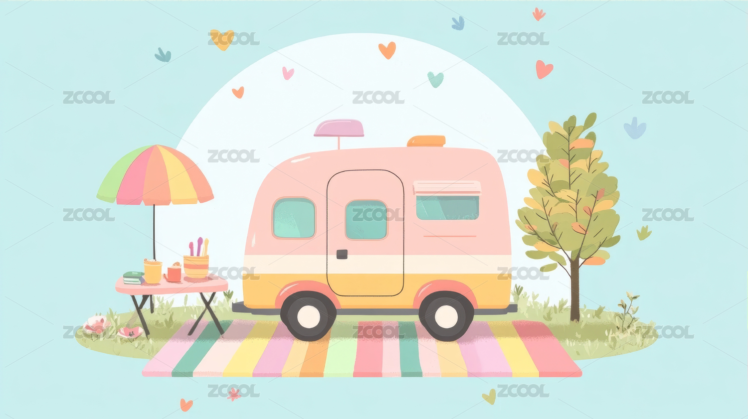 春天,踏青,房车,旅游,旅行,扁平,插画