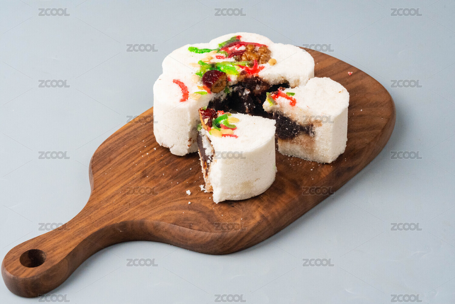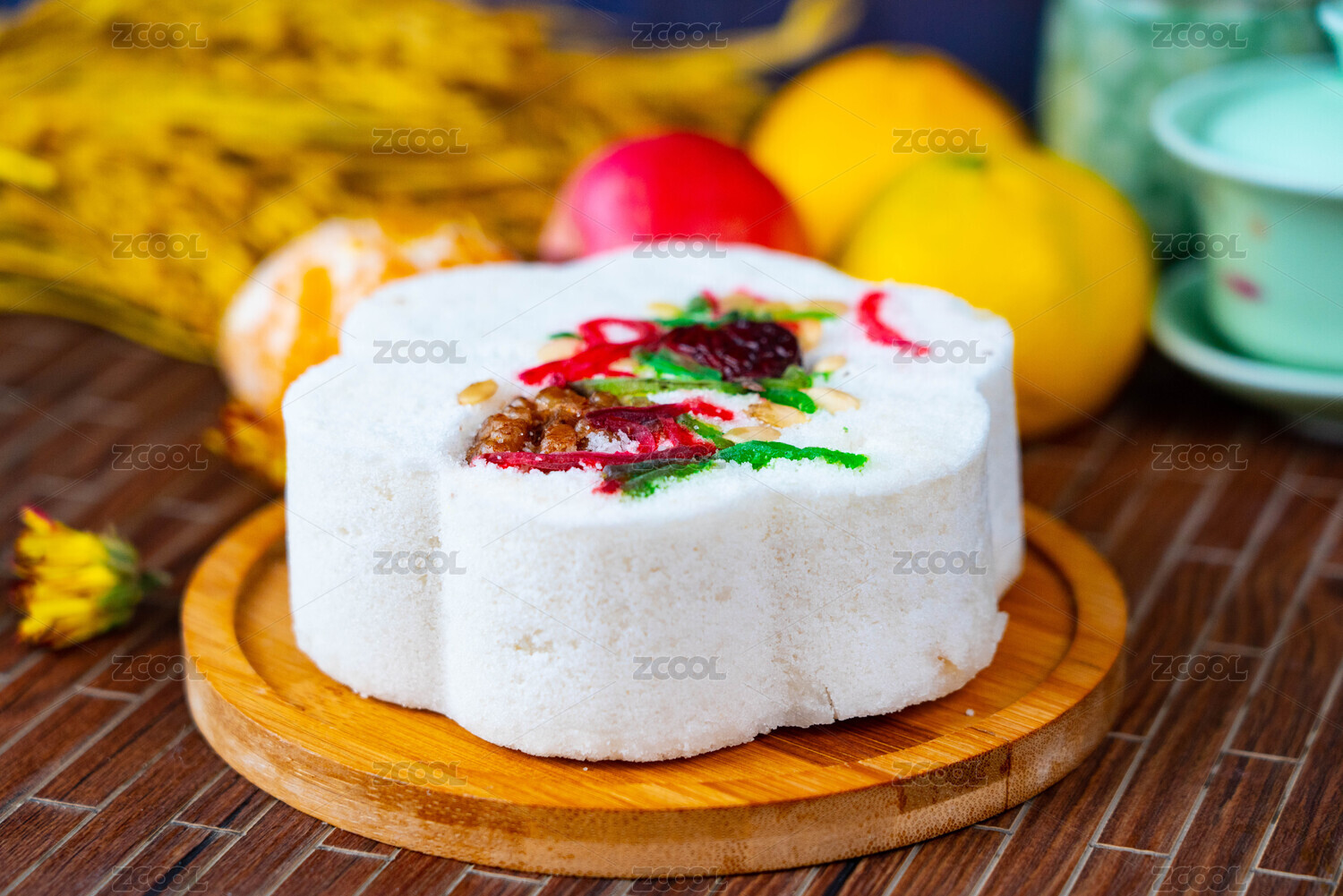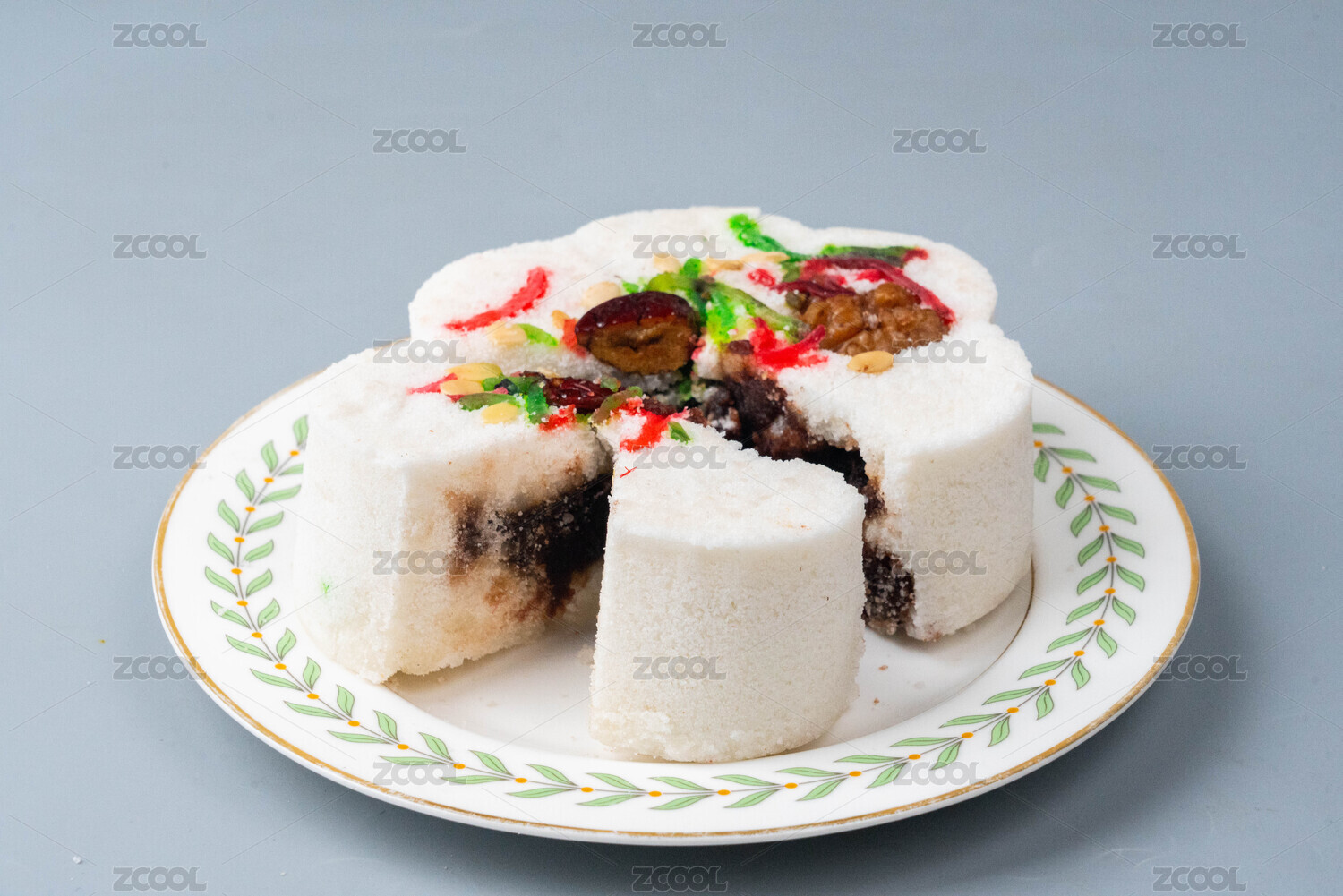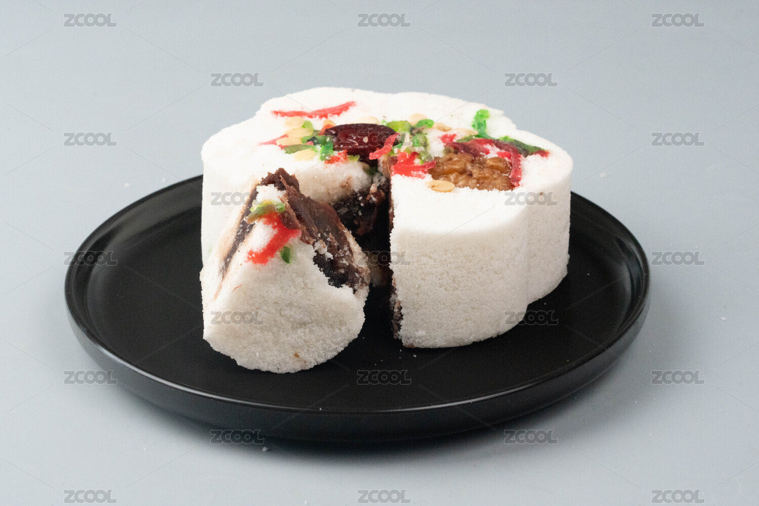姜米豆沙年糕,夹心米糕,馅料,黏糕,小吃,HENP202113,HENP202114,传统小吃,暗色调,瓷碗