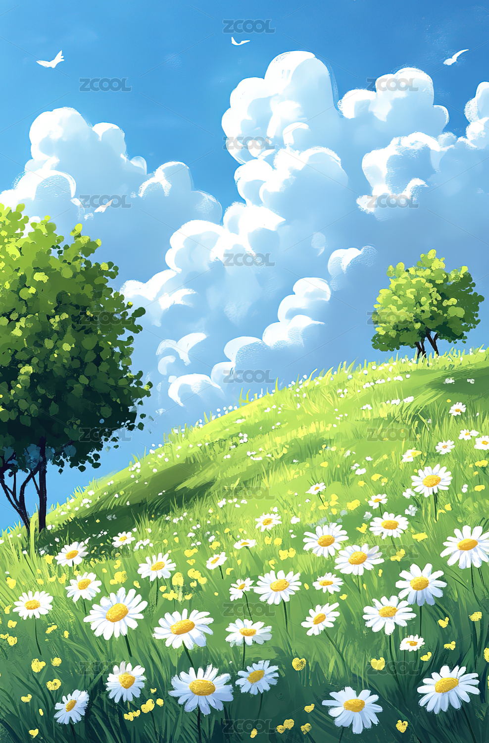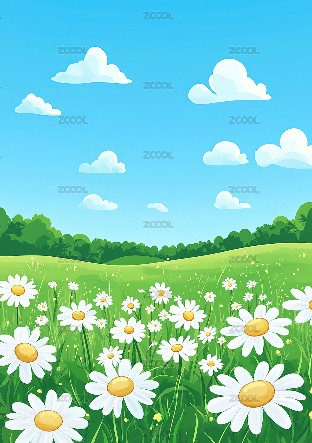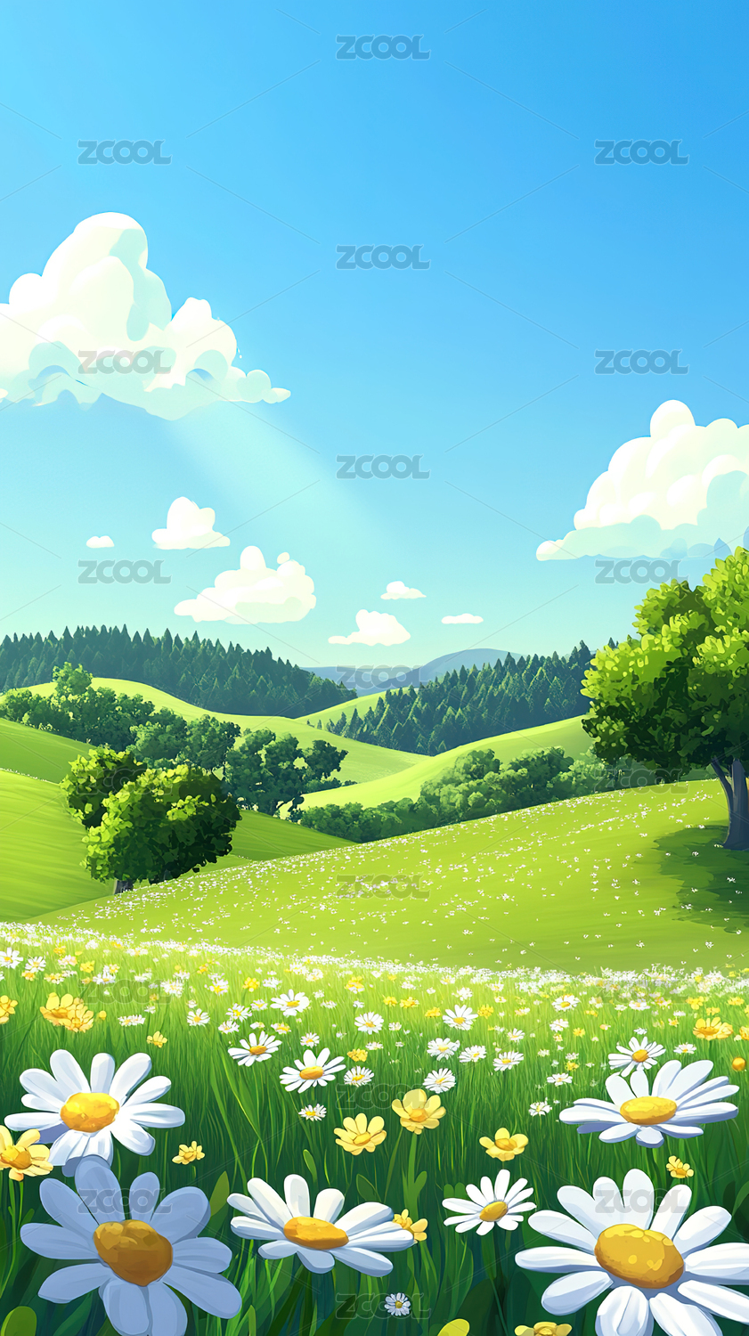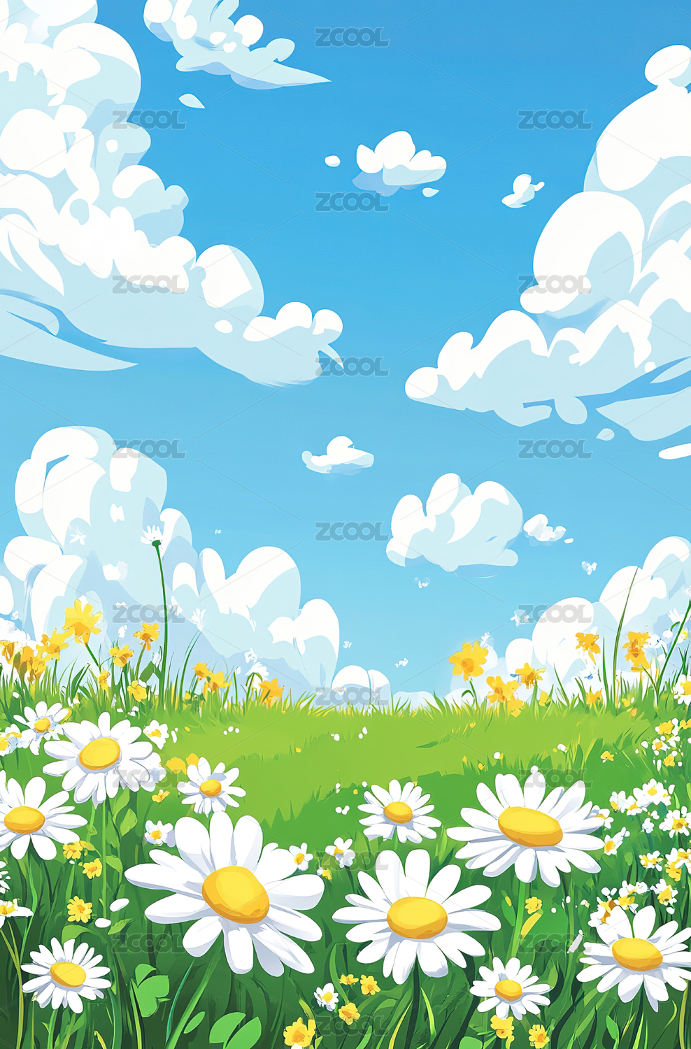 卡通,自然,绿地,蓝天,鲜花,背景,天空,漫画,野外,郊外