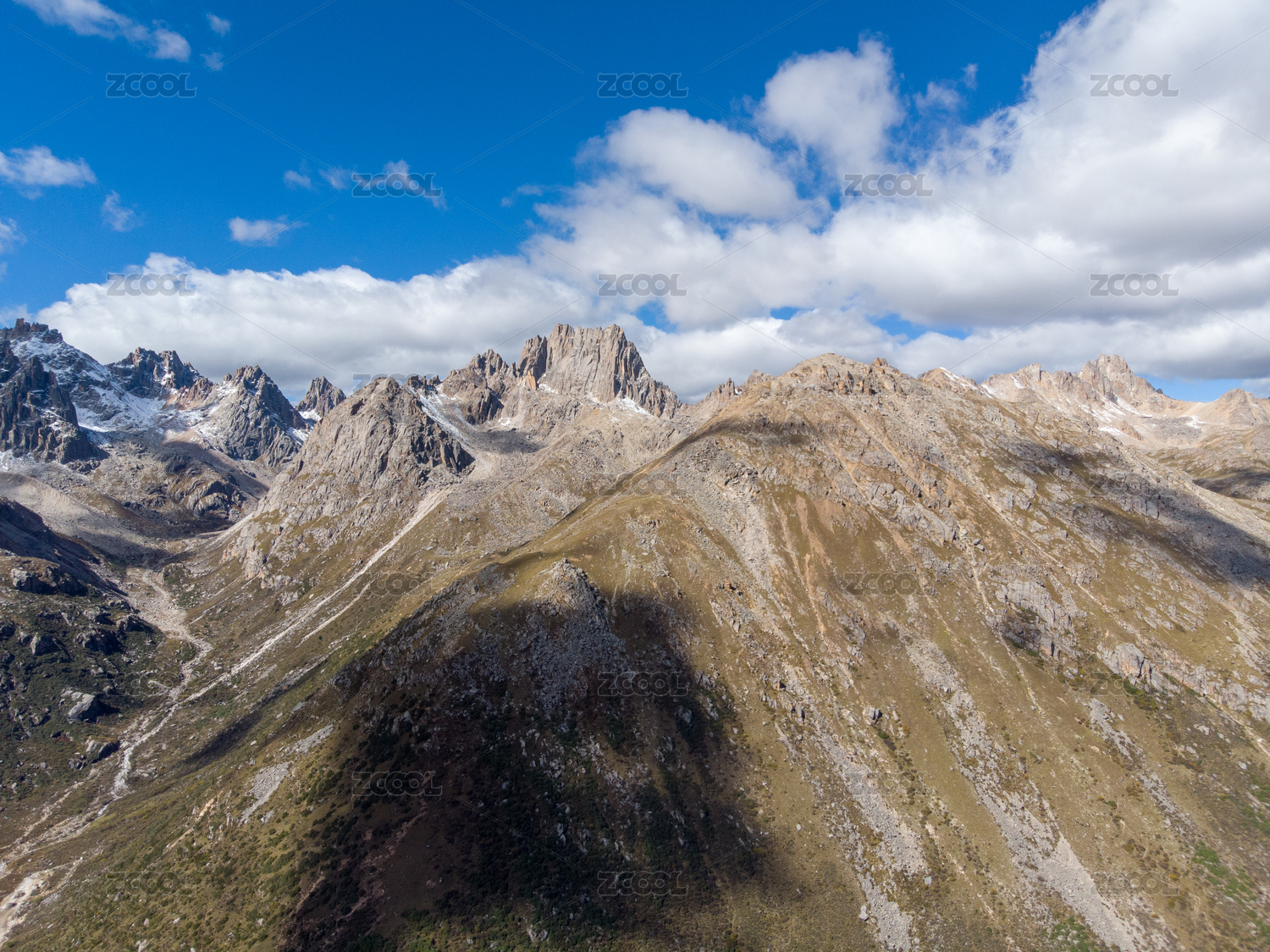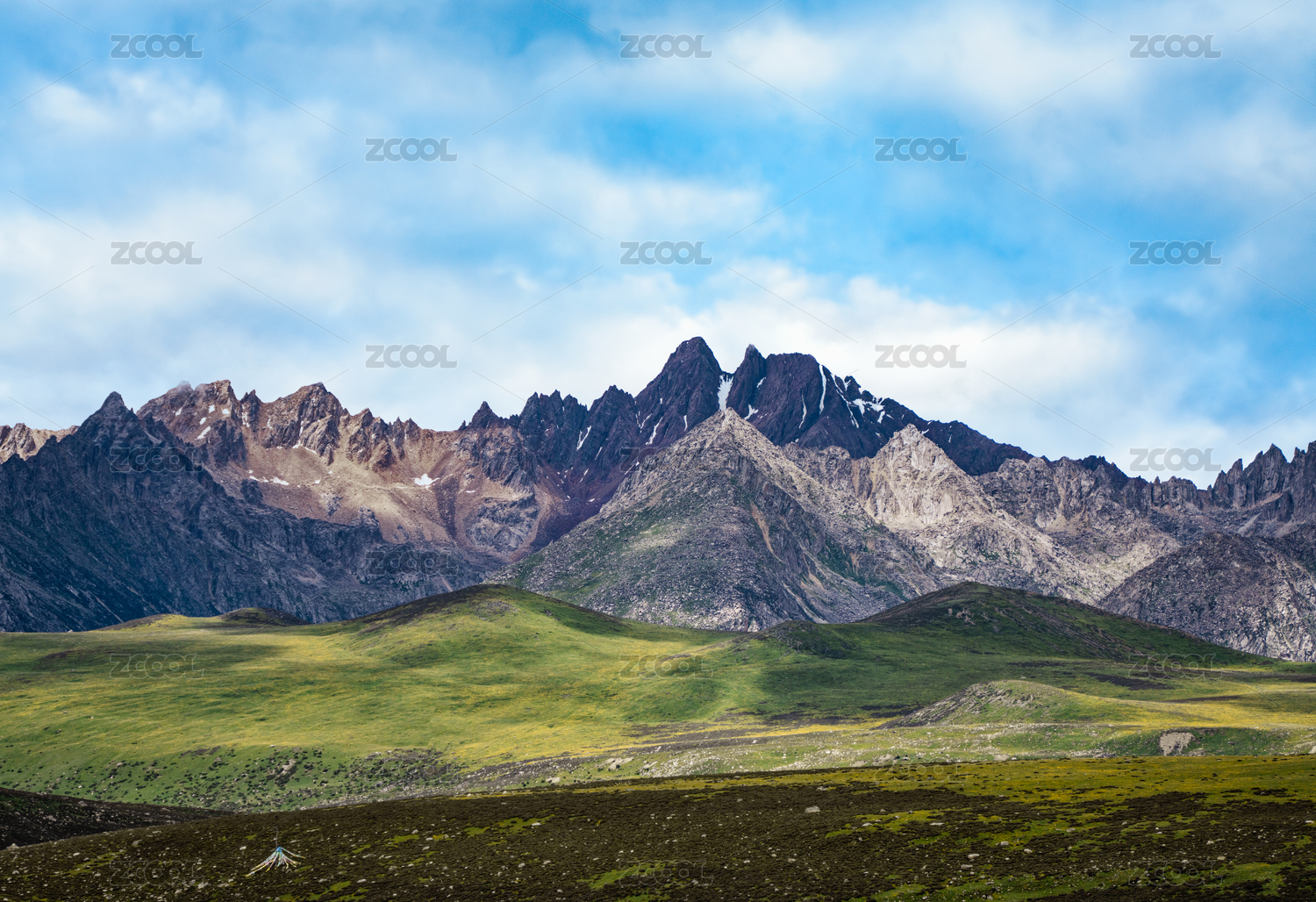 四川西部甘孜新都桥镇鱼子西景区远望雪山