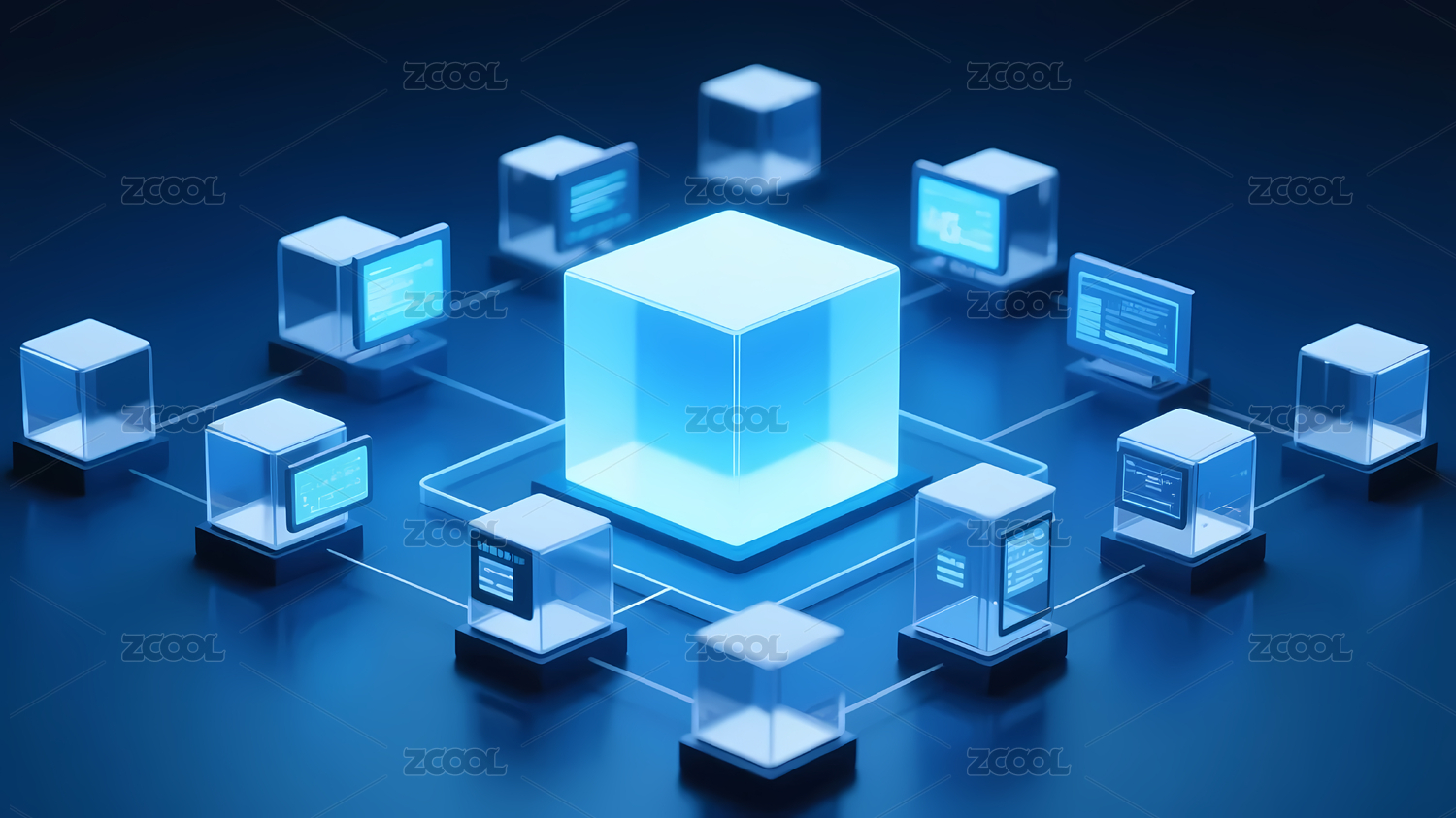 蓝色立方体网络连接图