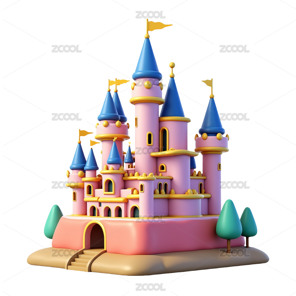城堡,乌龟,宫殿,童话,奇幻,卡通,3D,建筑,蓝色,金色