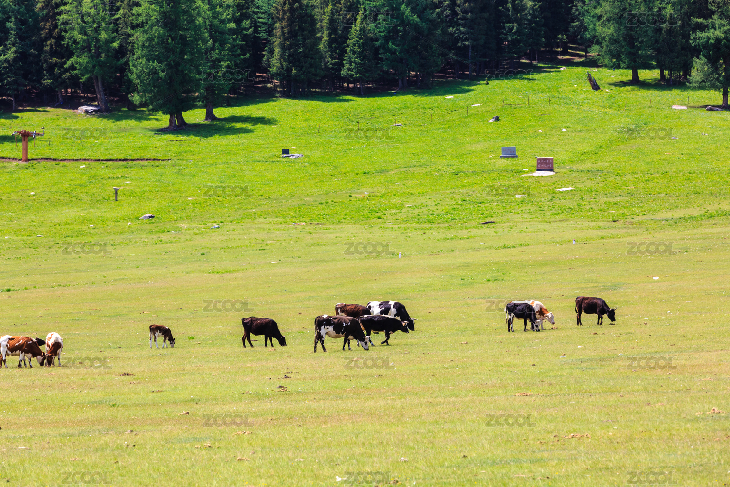 中国新疆伊犁哈萨克自治州昭苏县夏塔古道夏季牛犊