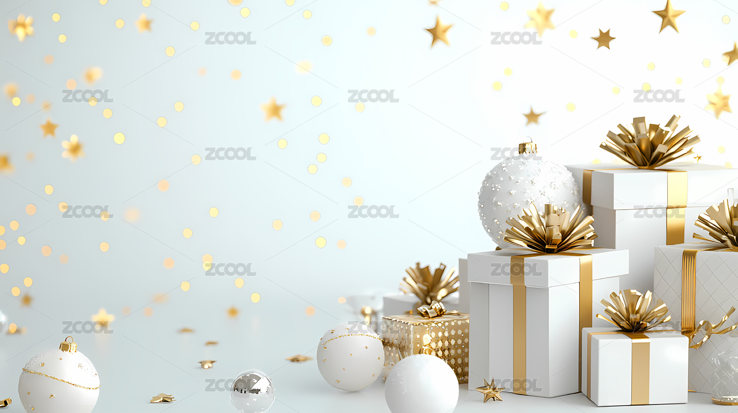 白色背景下的圣诞礼物特写镜头