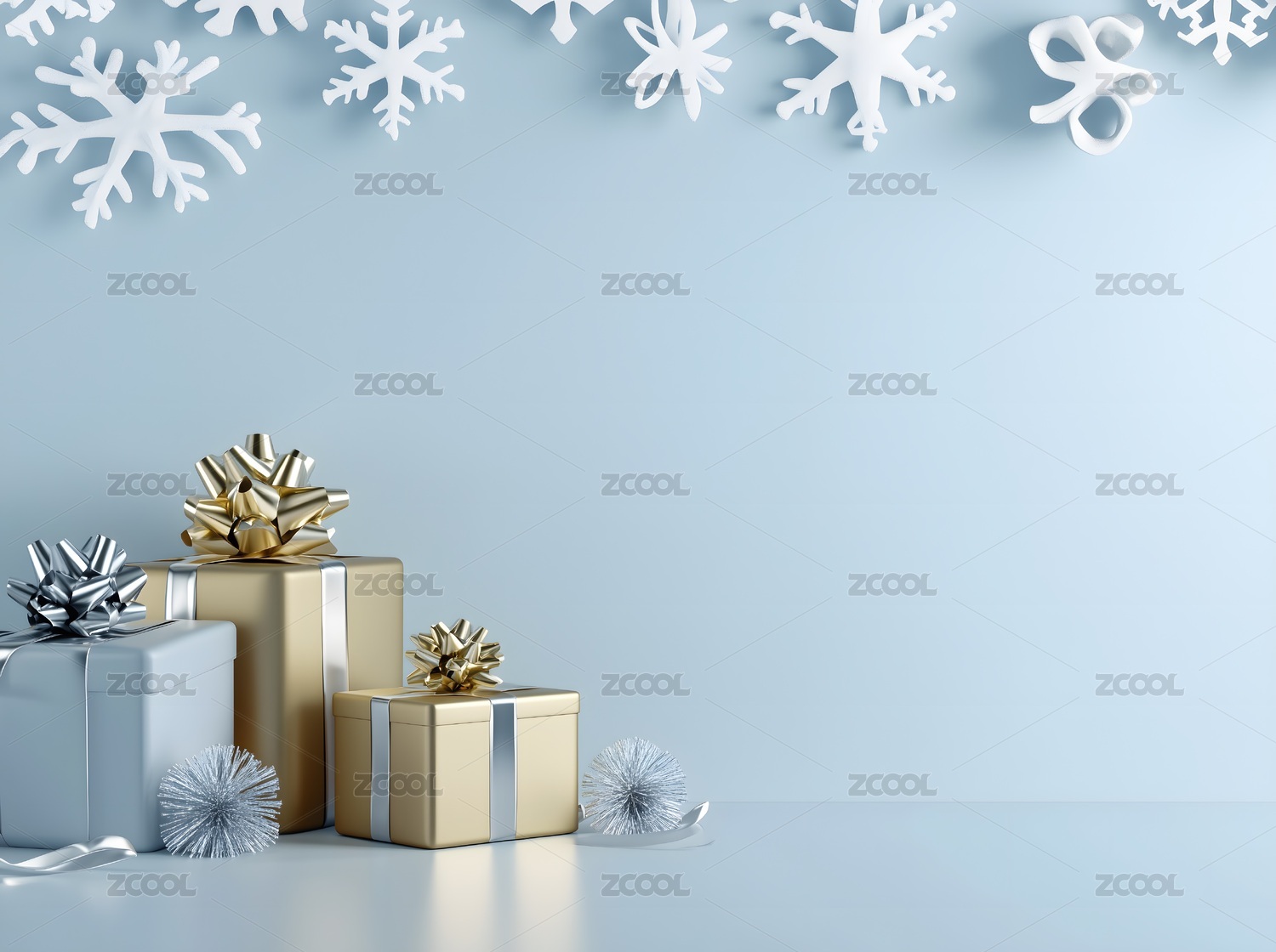 蓝色背景中雪花节日礼物