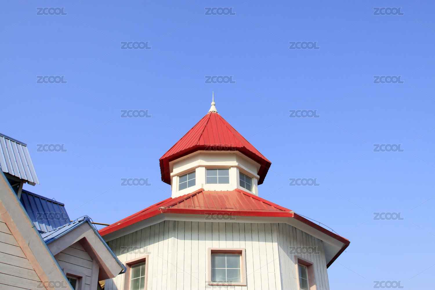 中国四川成都科玛小镇欧式风情建筑阁楼特写