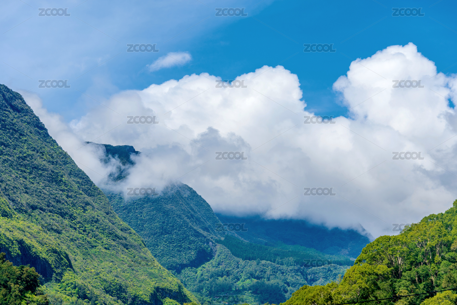 秋季白天美国塞班岛万岁崖附近山峰景观