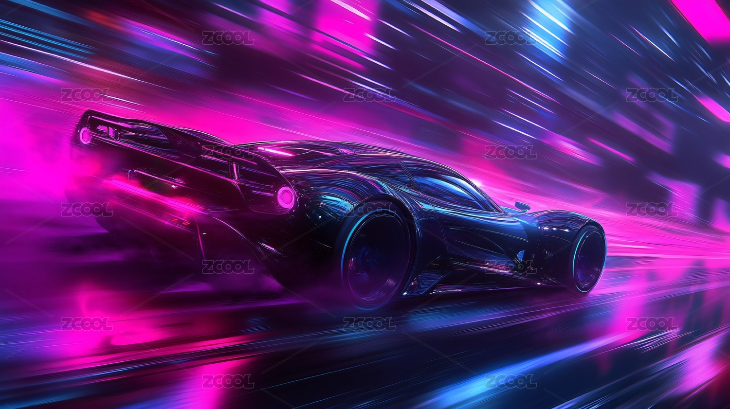 急速行驶中的超级跑车,未来霓虹风格概念
