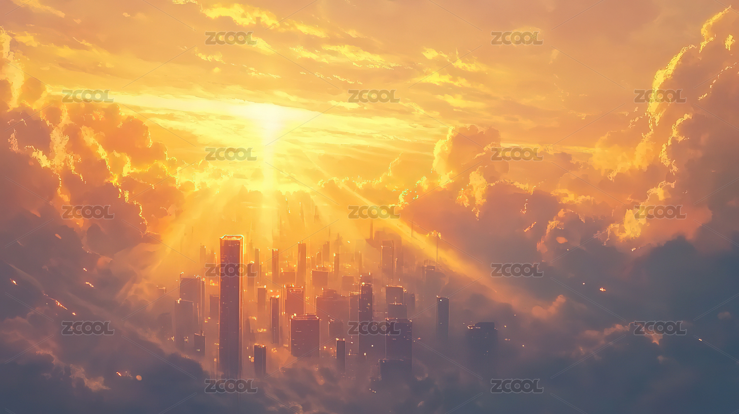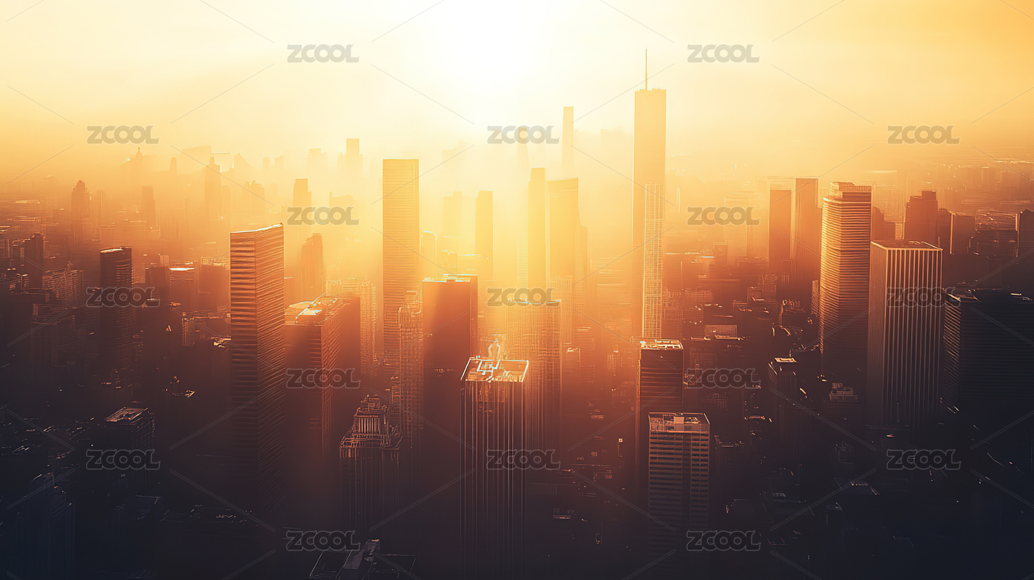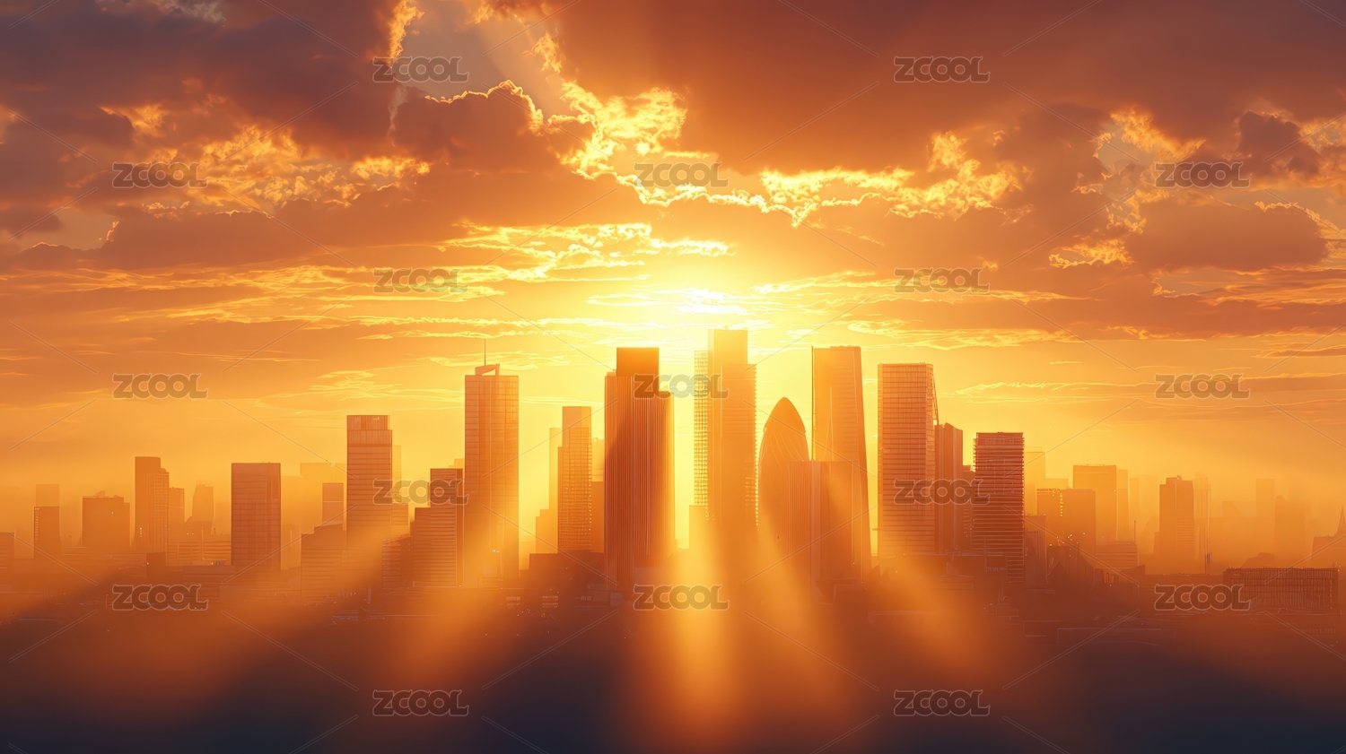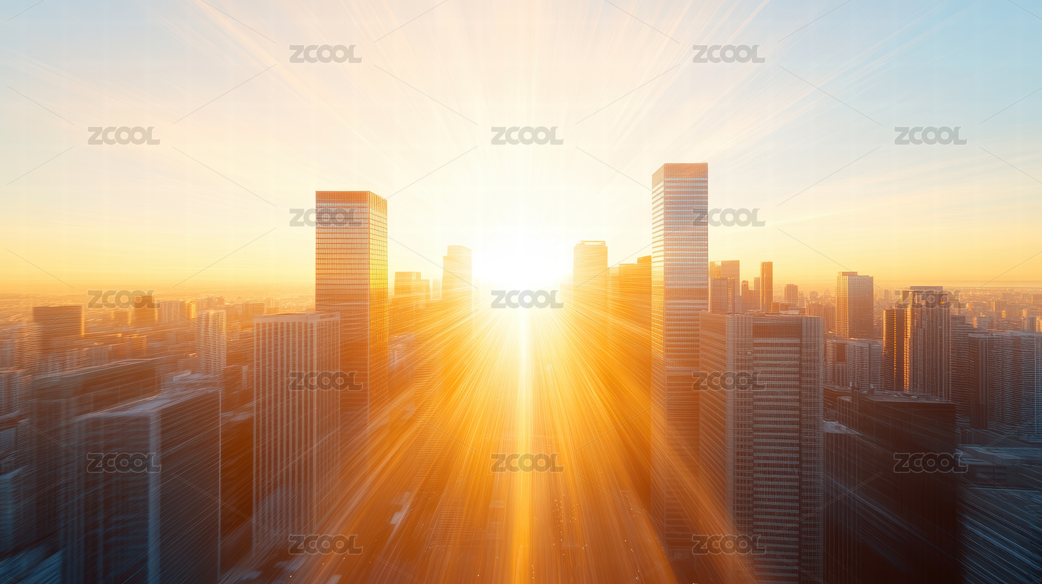 日出下的城市建筑群