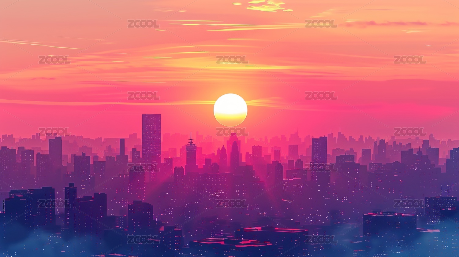 傍晚的城市插画背景