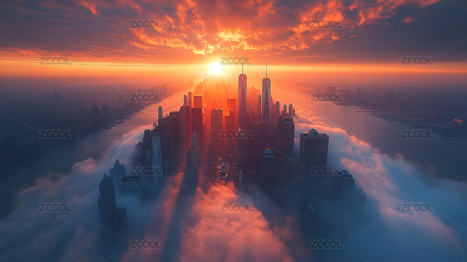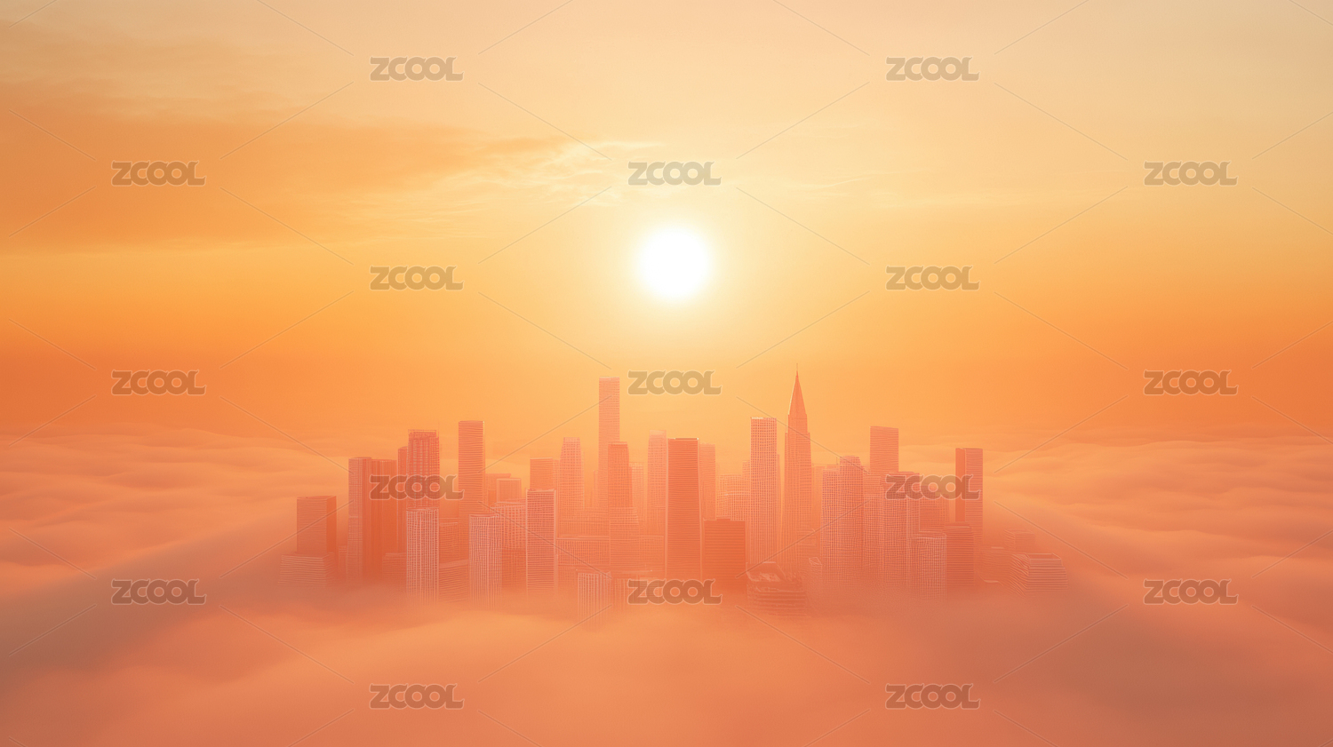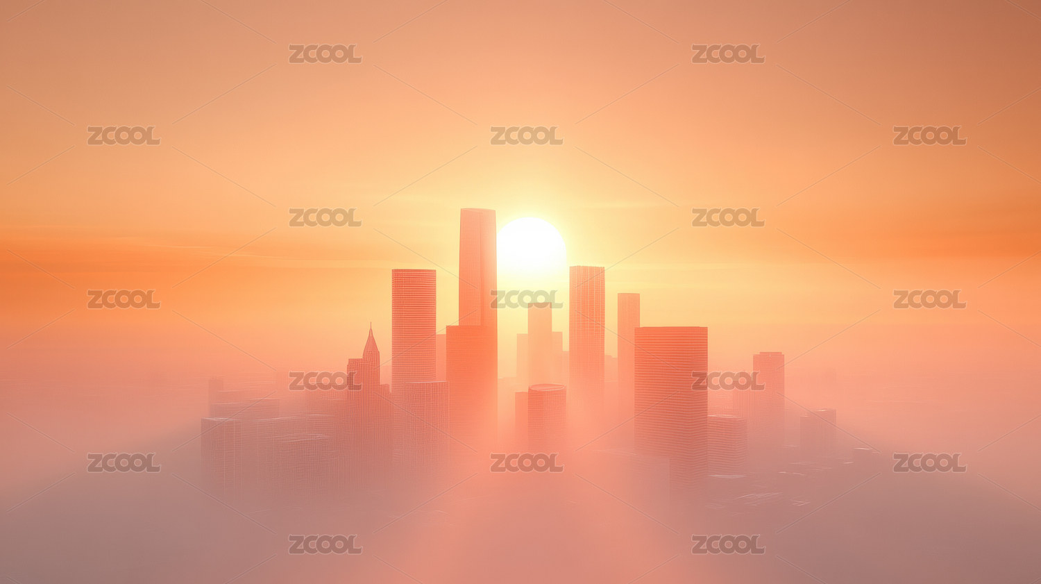 晨雾中的城市日出