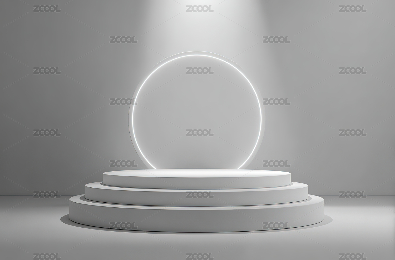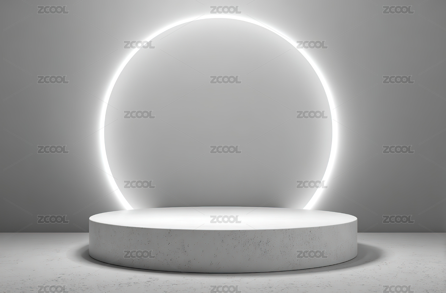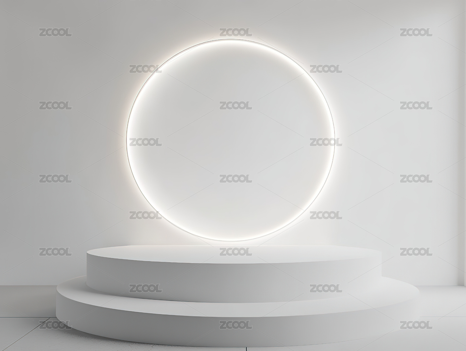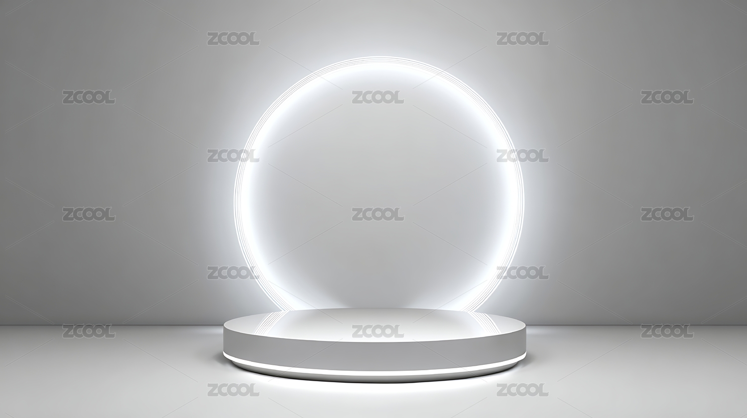 发光圆环与白色展台