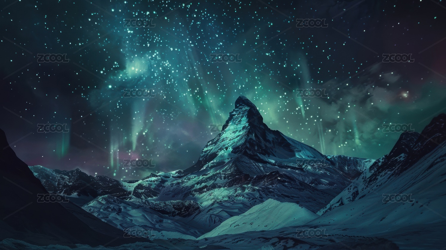 星空下的雪山和抽象图案