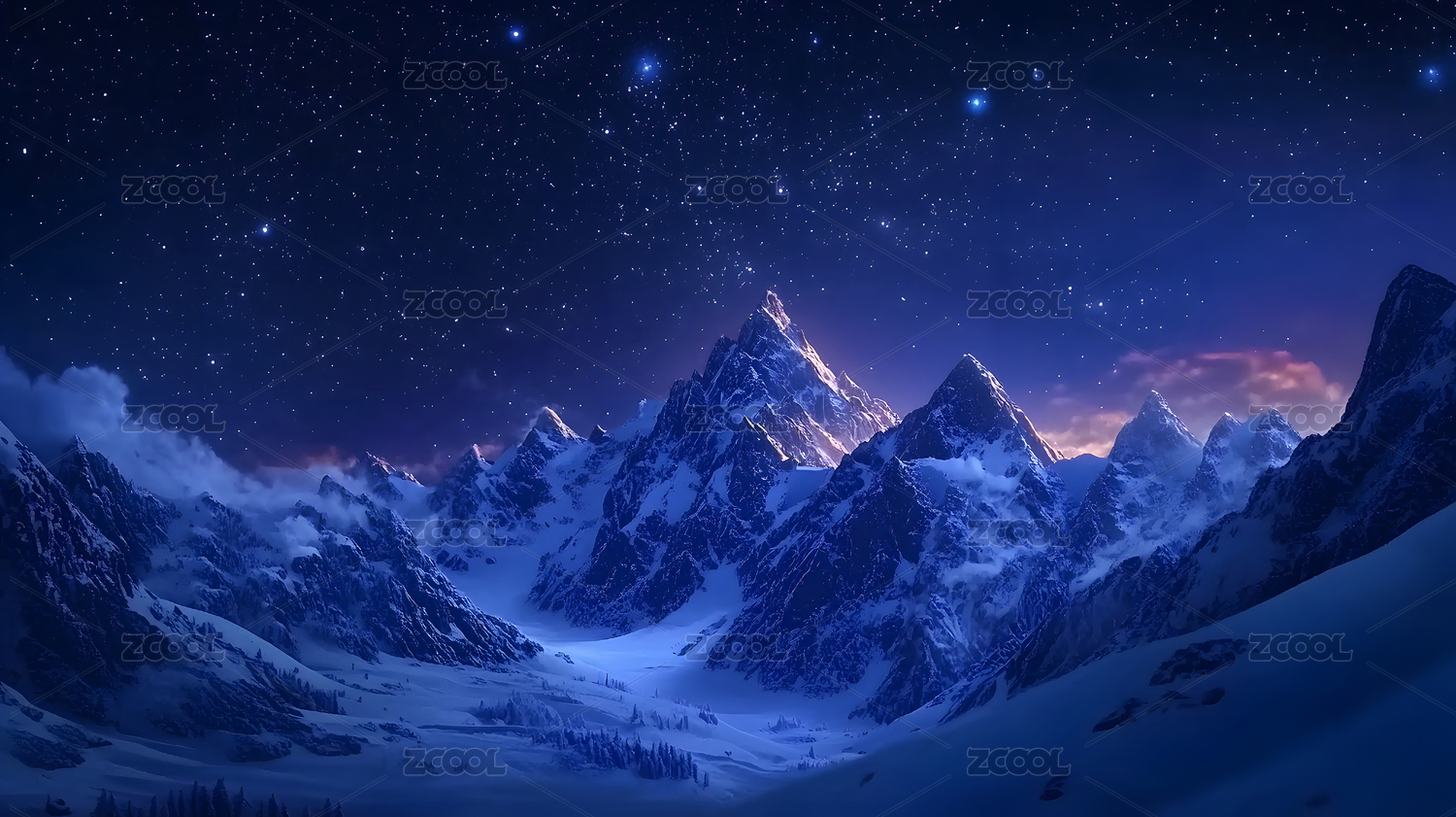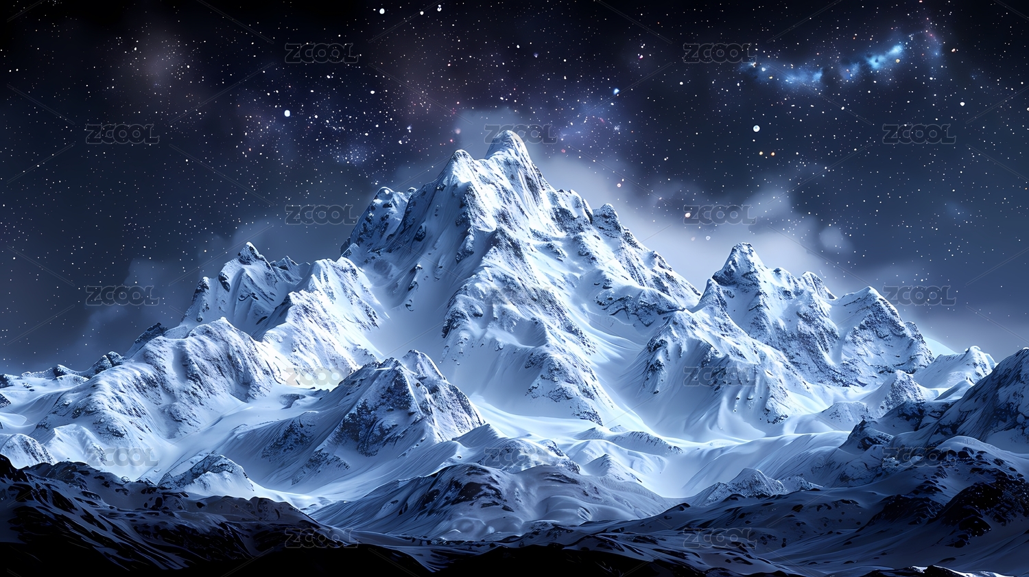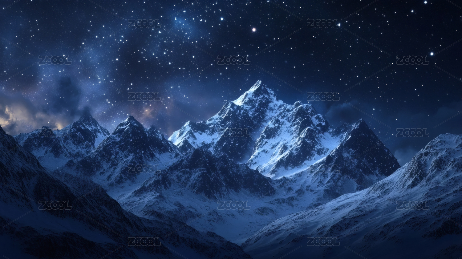 星空下的雪山与
