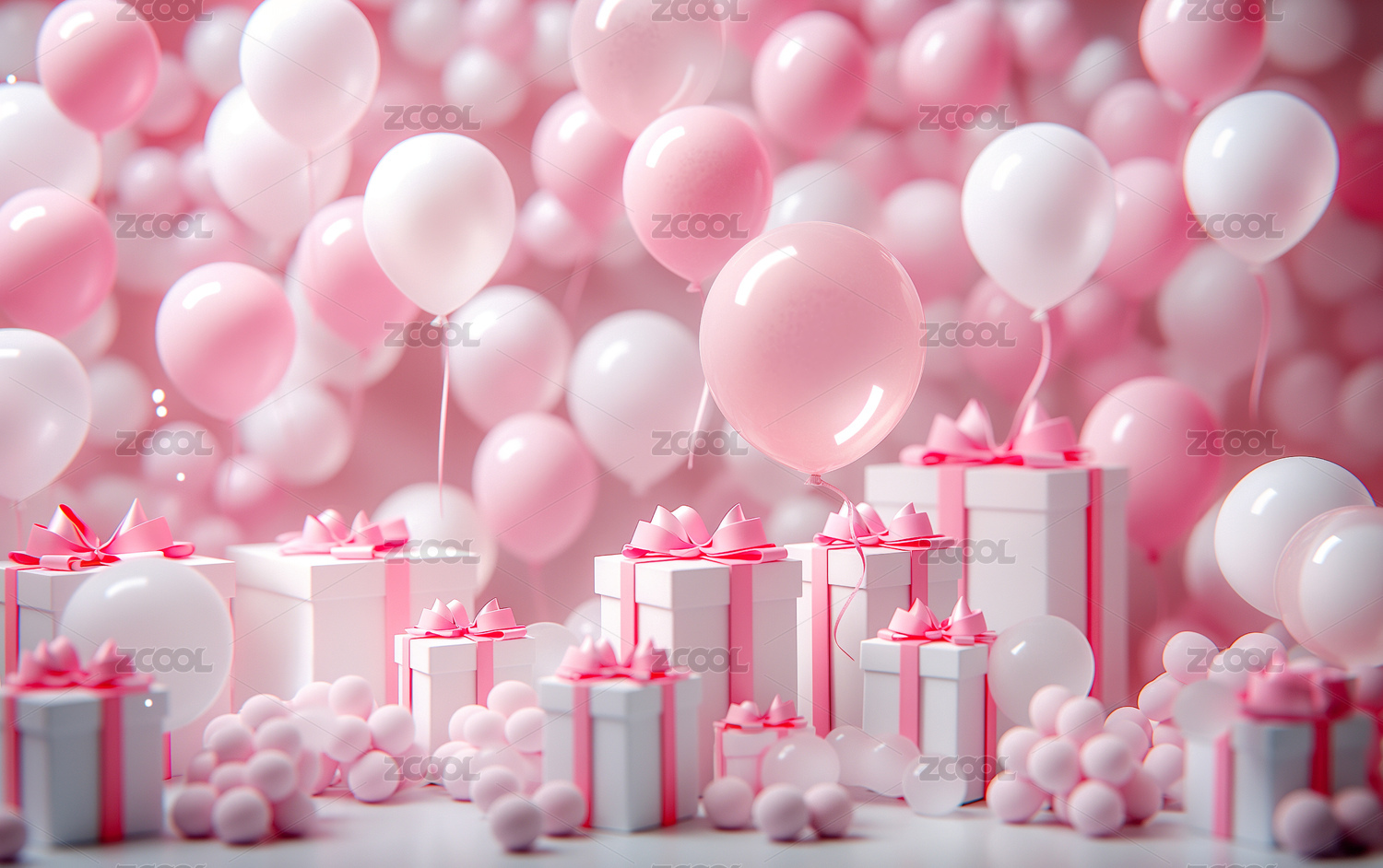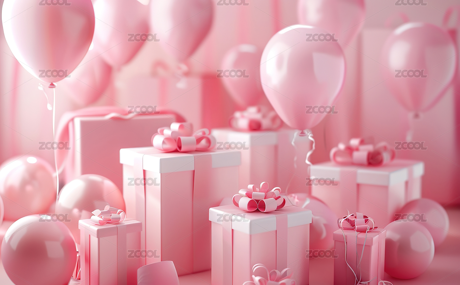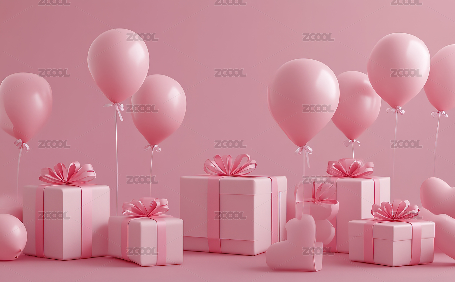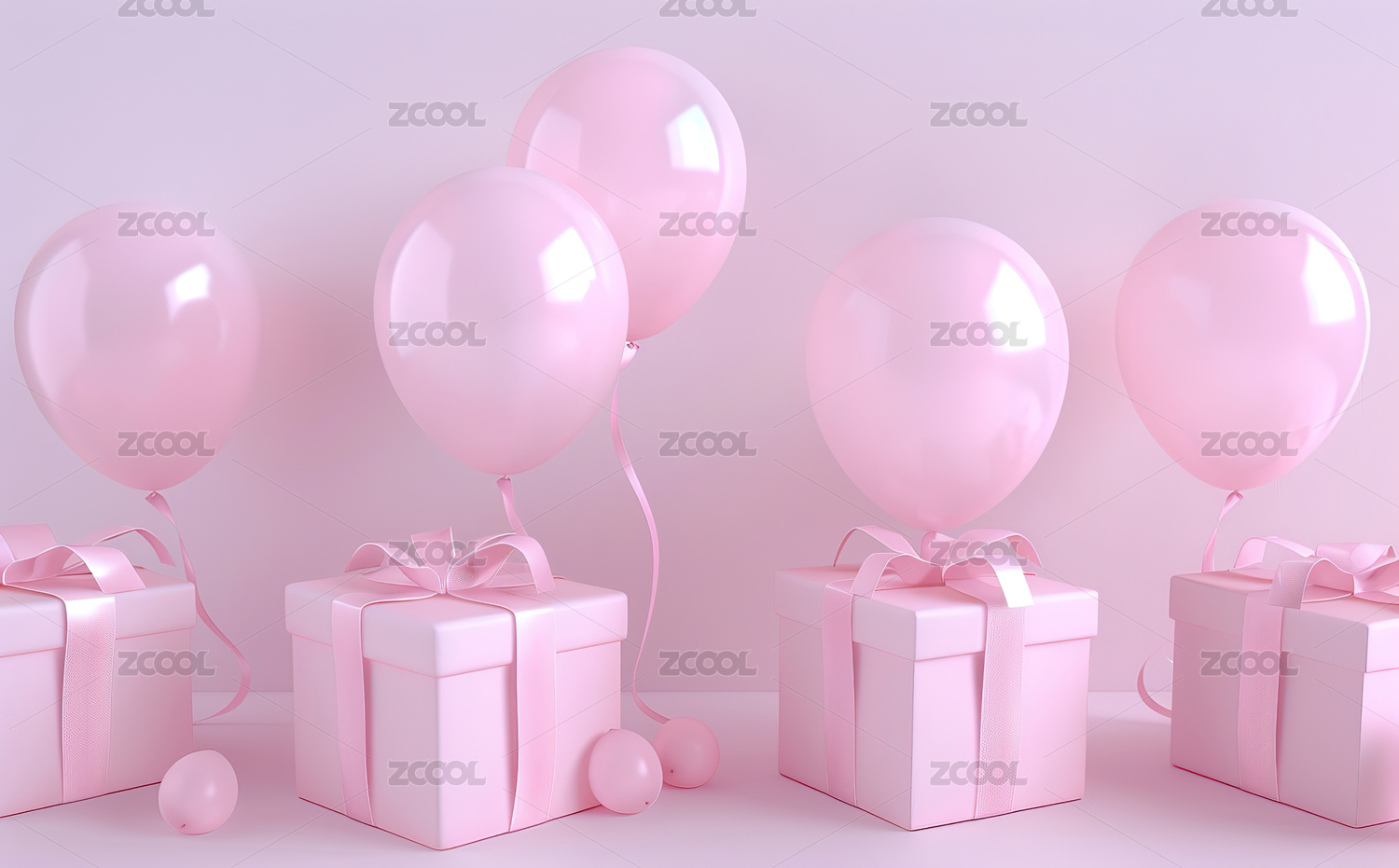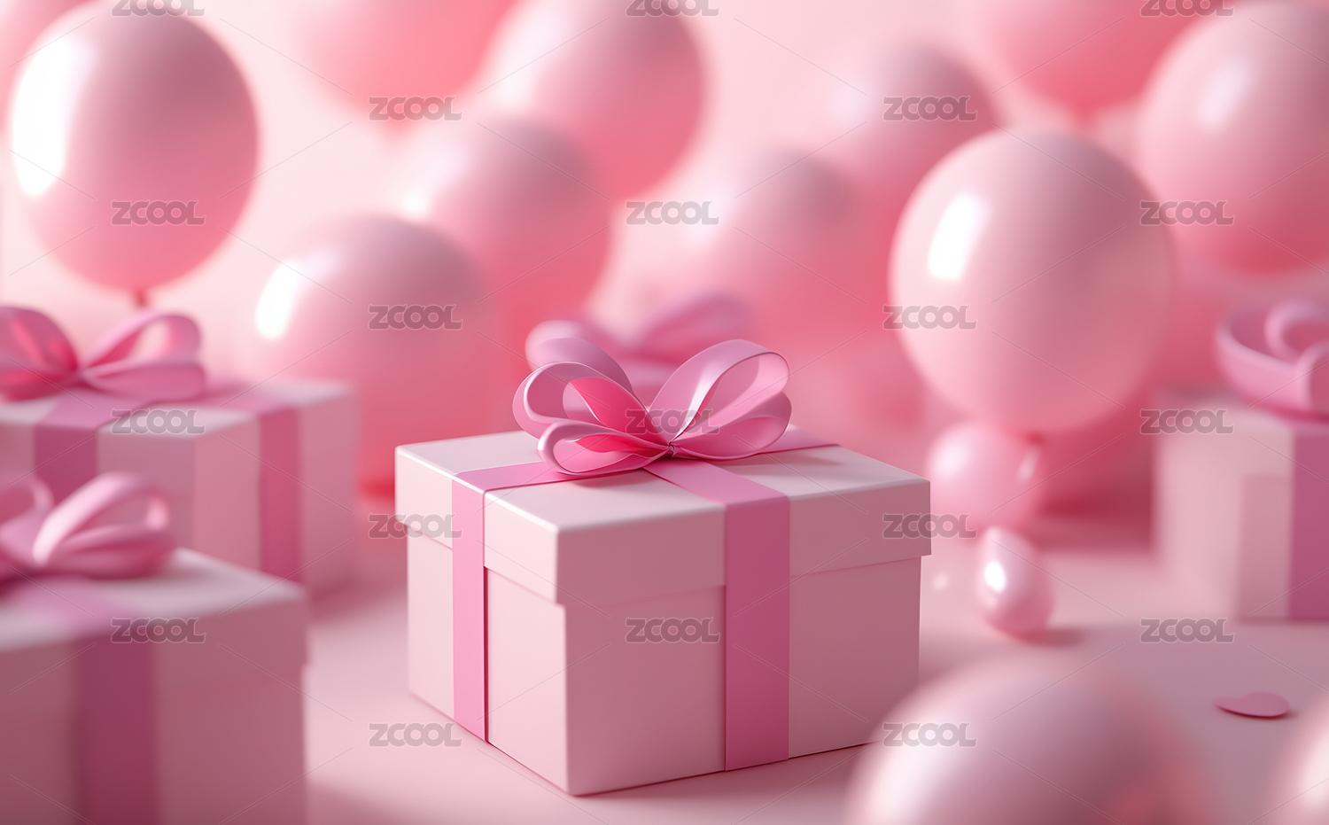 气球和礼物盒粉色调背景图