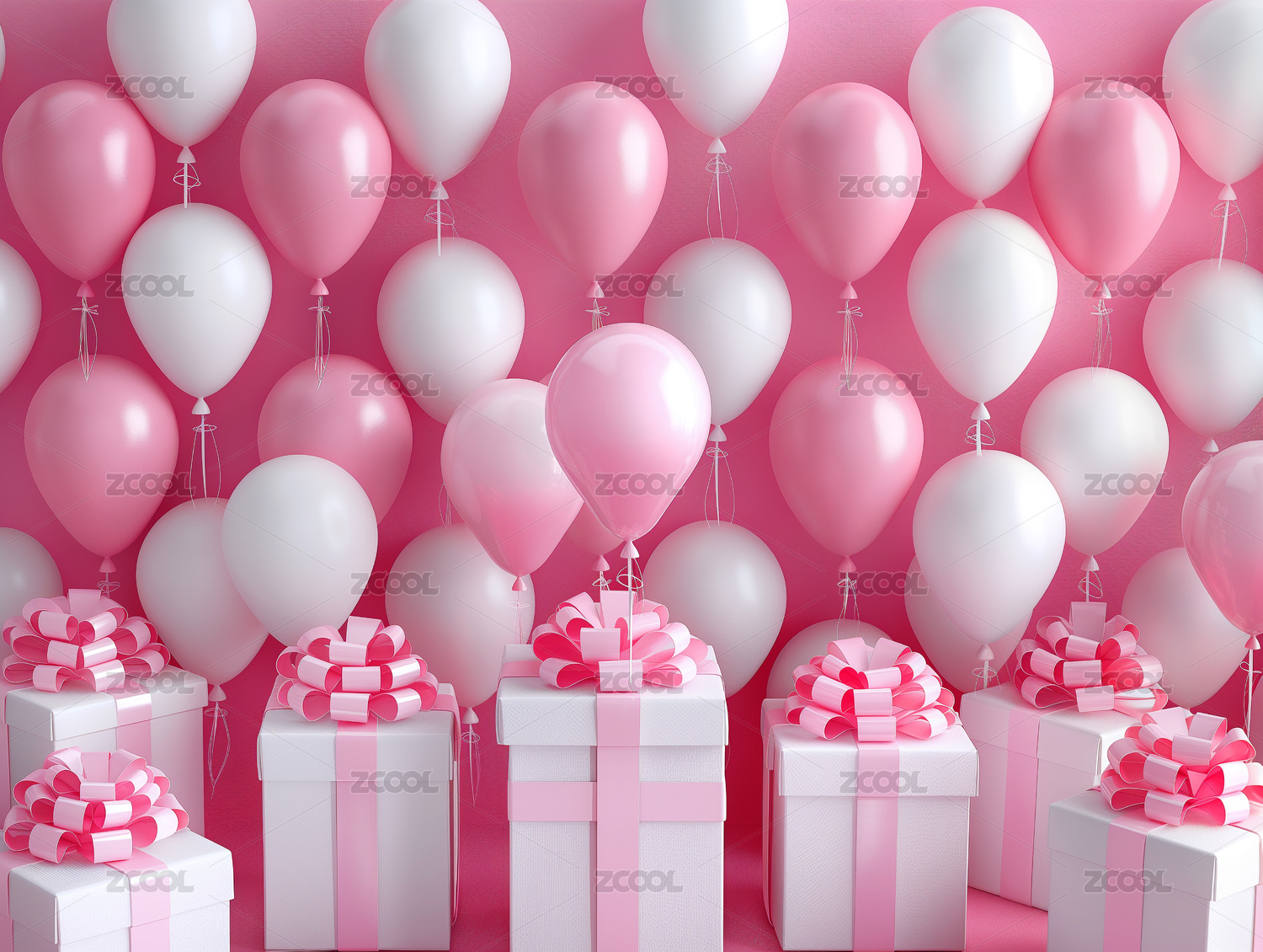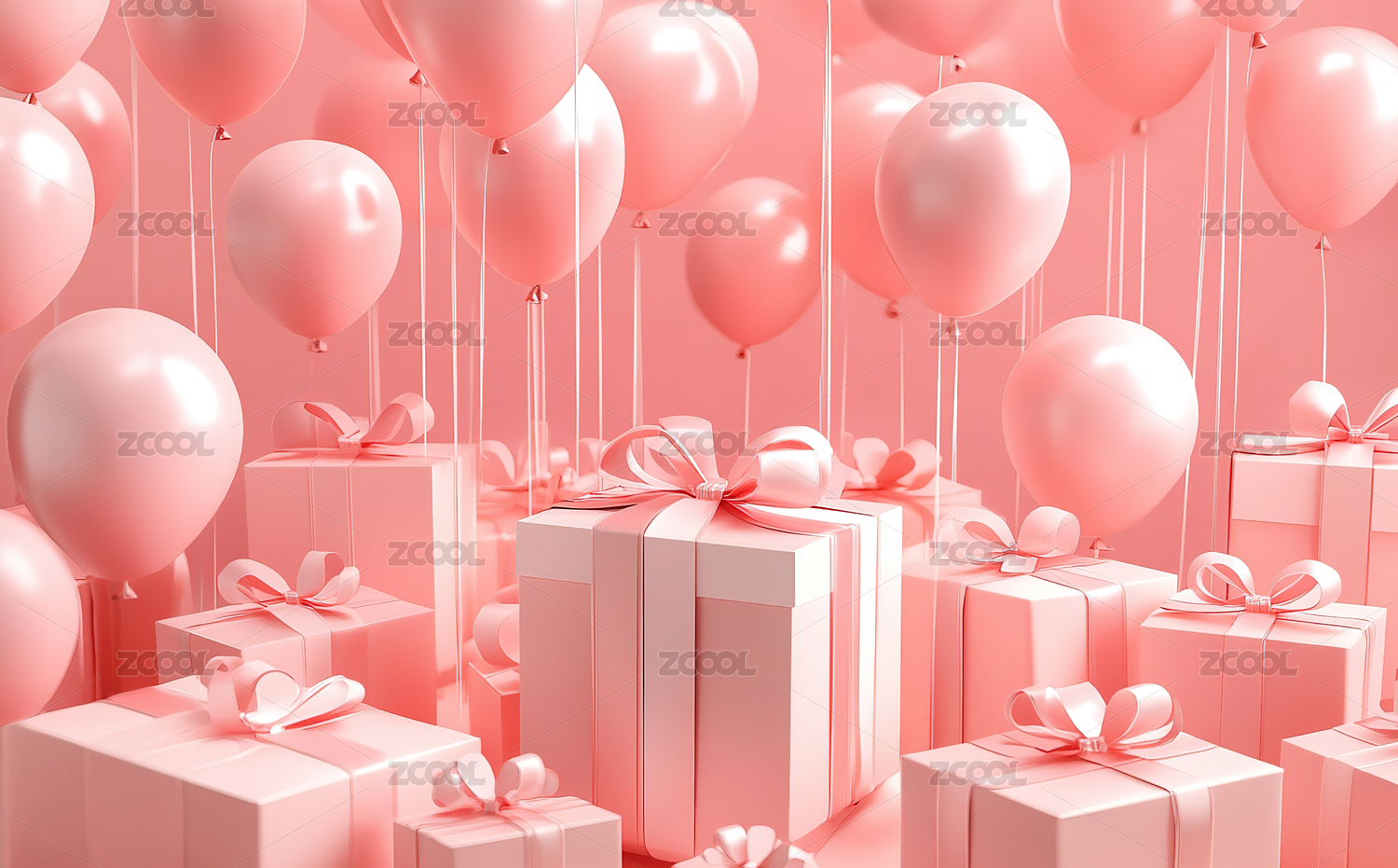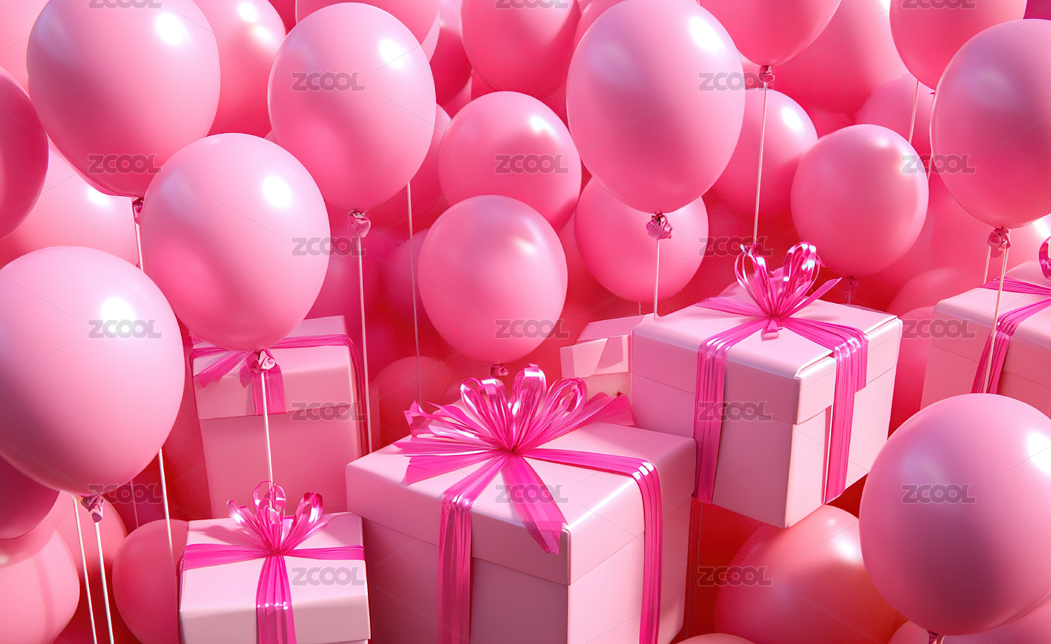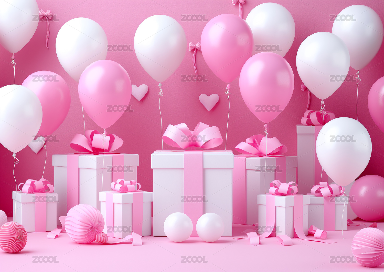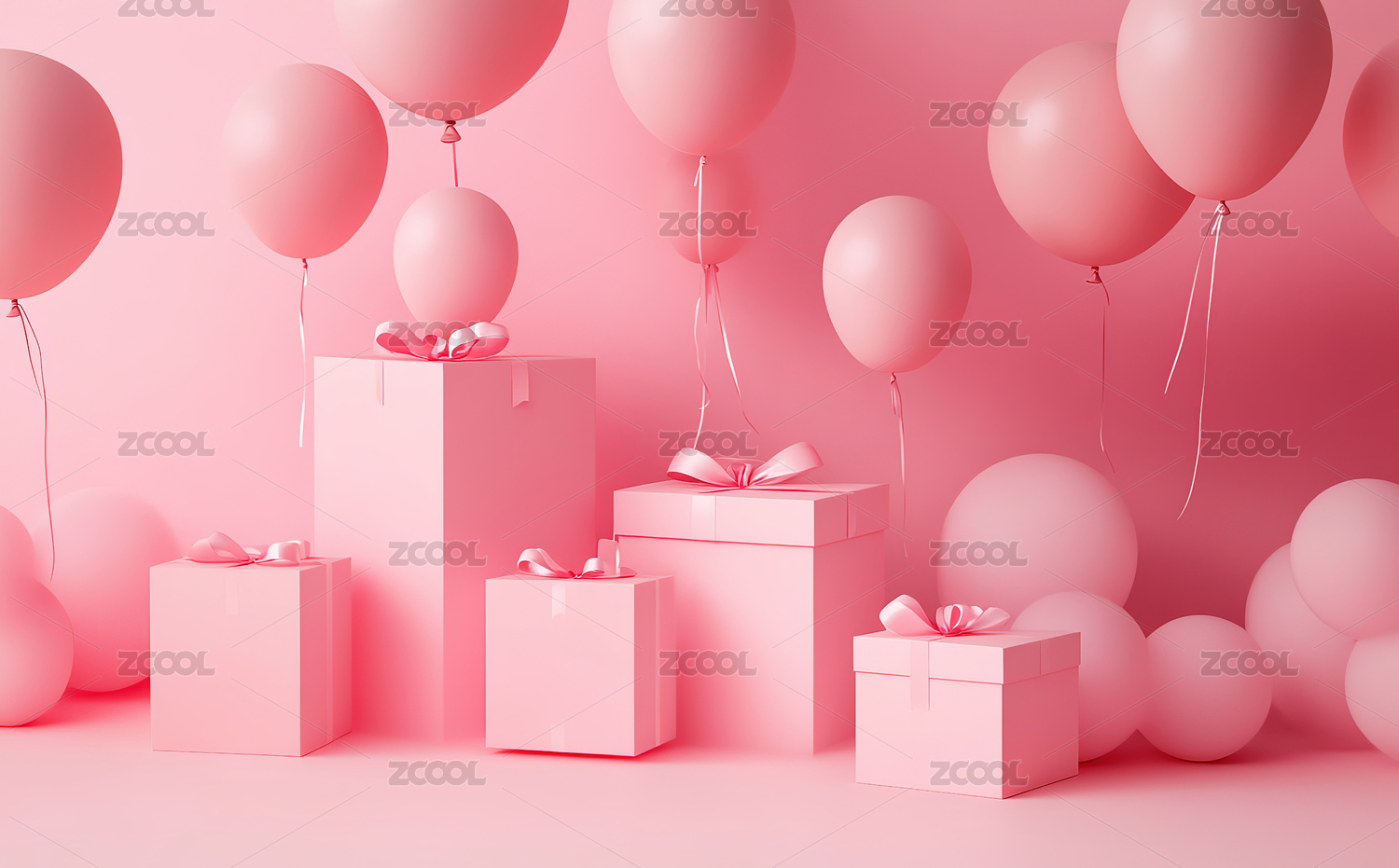 气球和礼物盒粉色调背景图