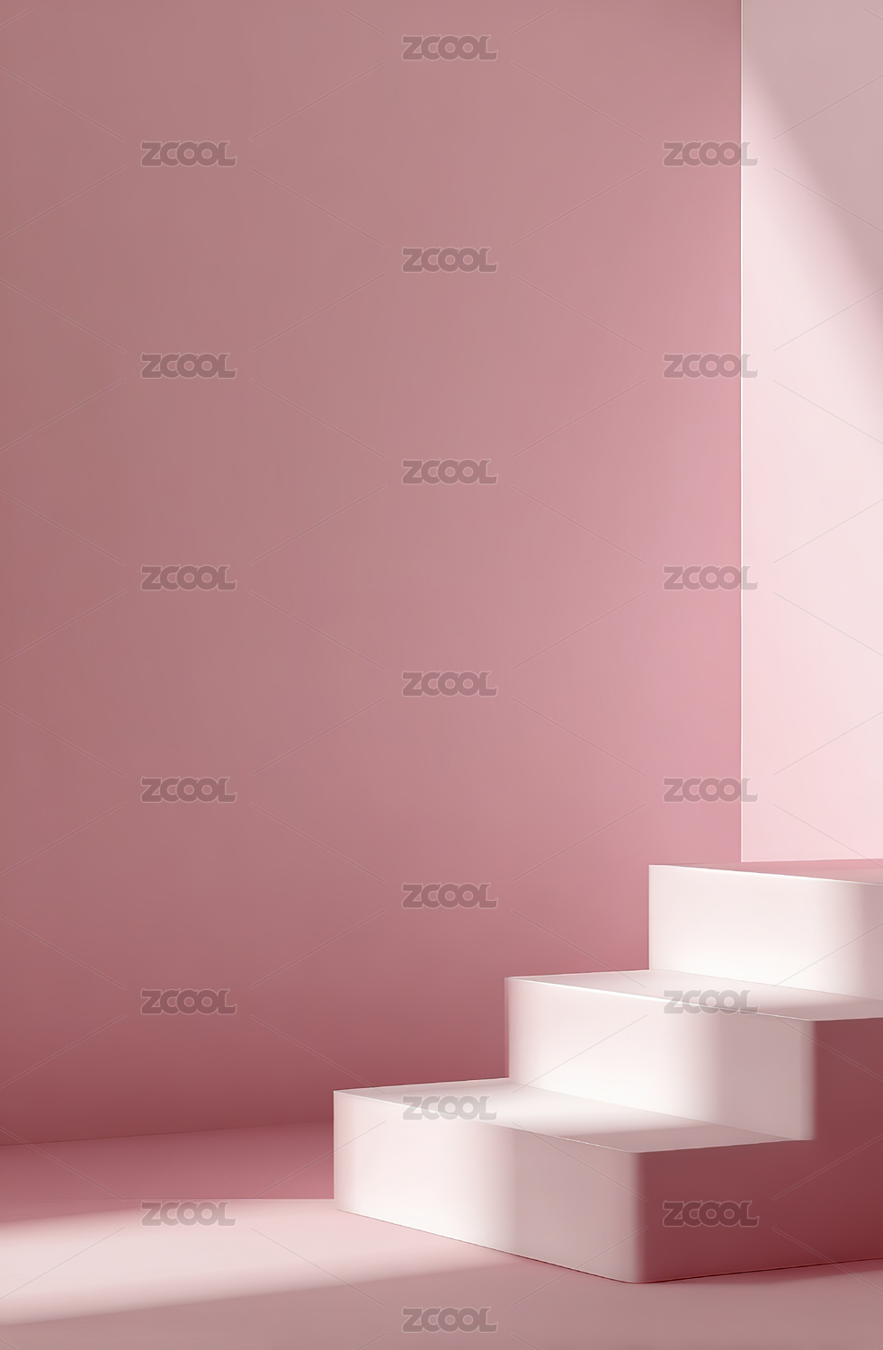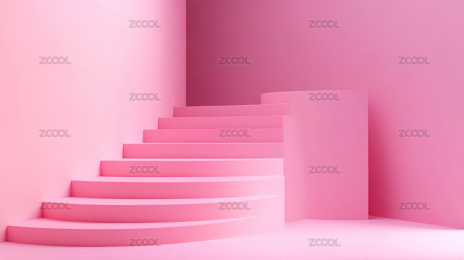 粉红色小楼梯简约几何时尚电商促销立体摆台