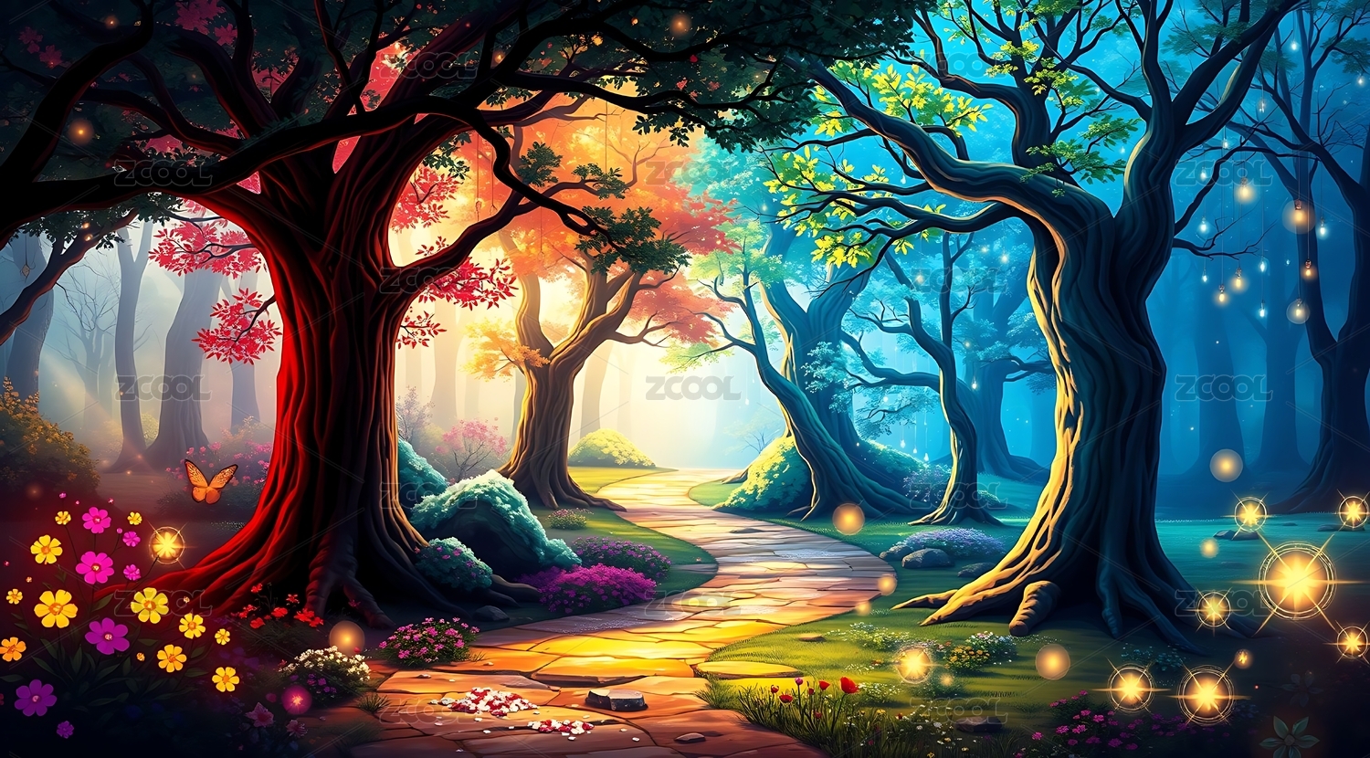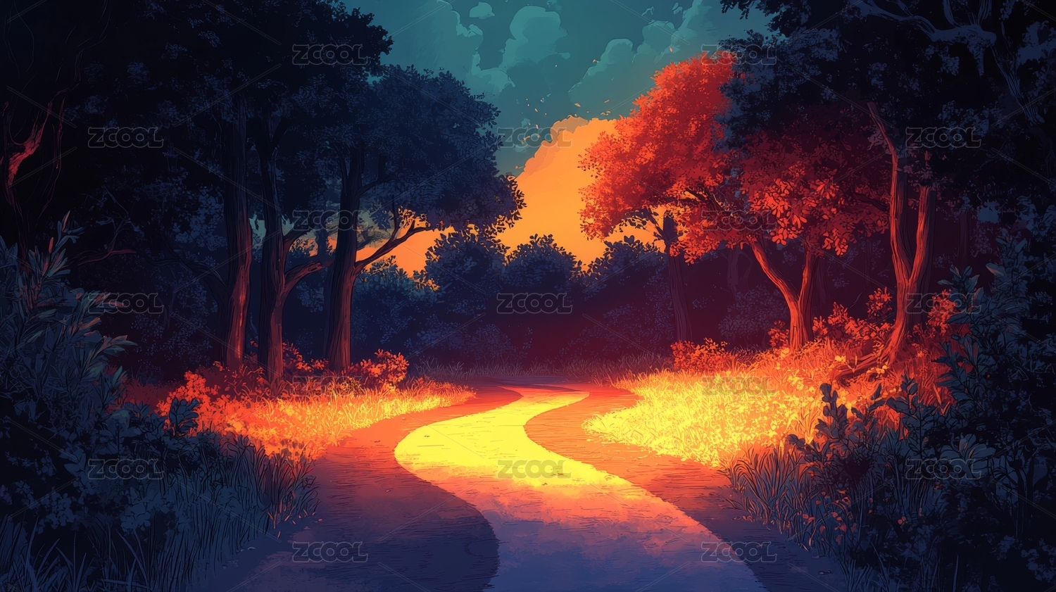 自然,风景,插画,户外,自然美,AI数字艺术,天空,树,旅游,梯田