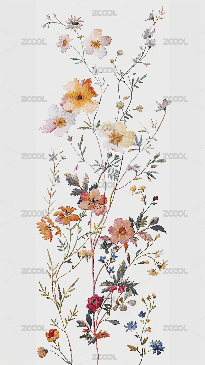 多种颜色和形状的花卉图案