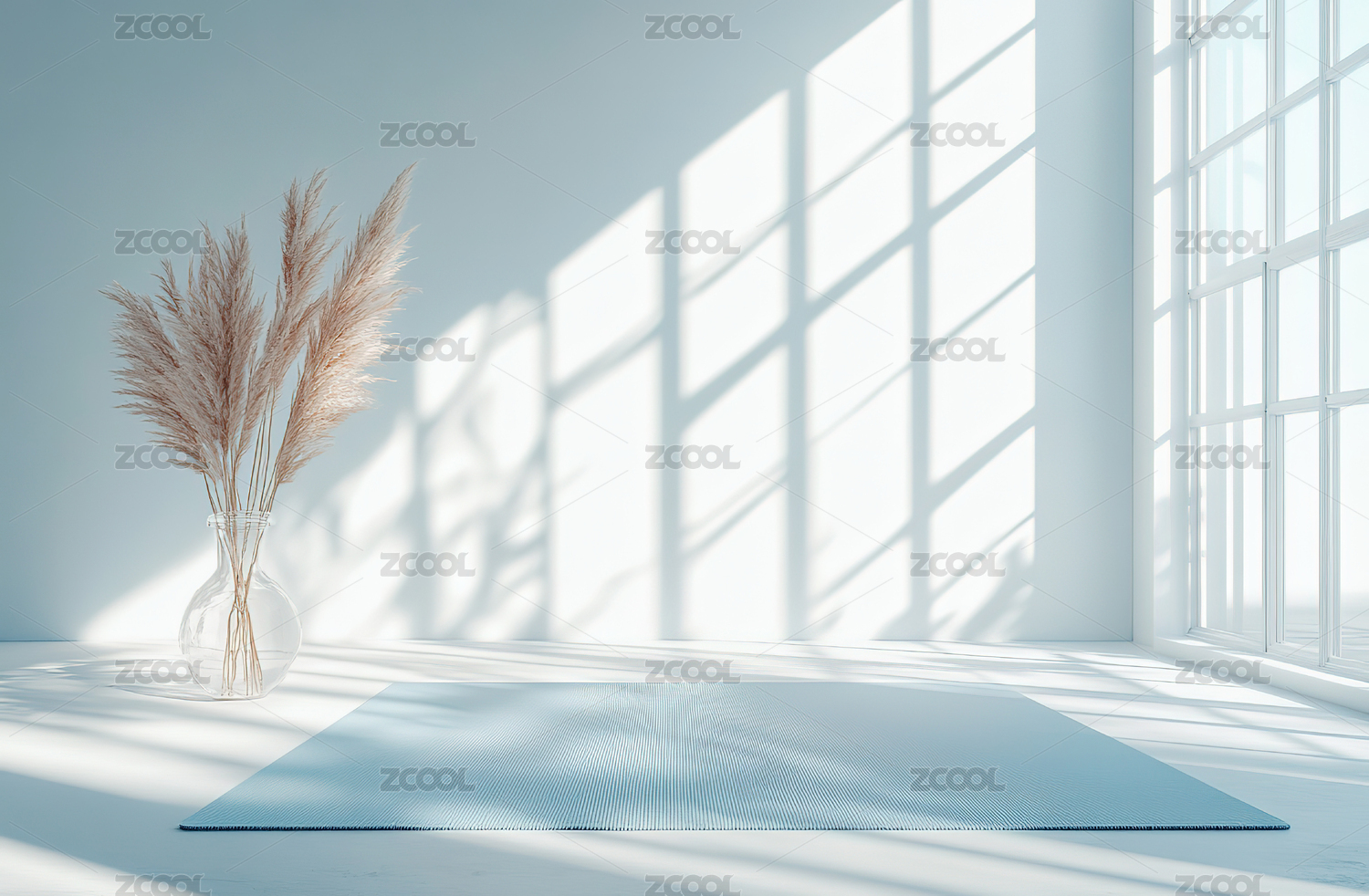 明亮宽敞的瑜伽室铺着瑜伽垫
