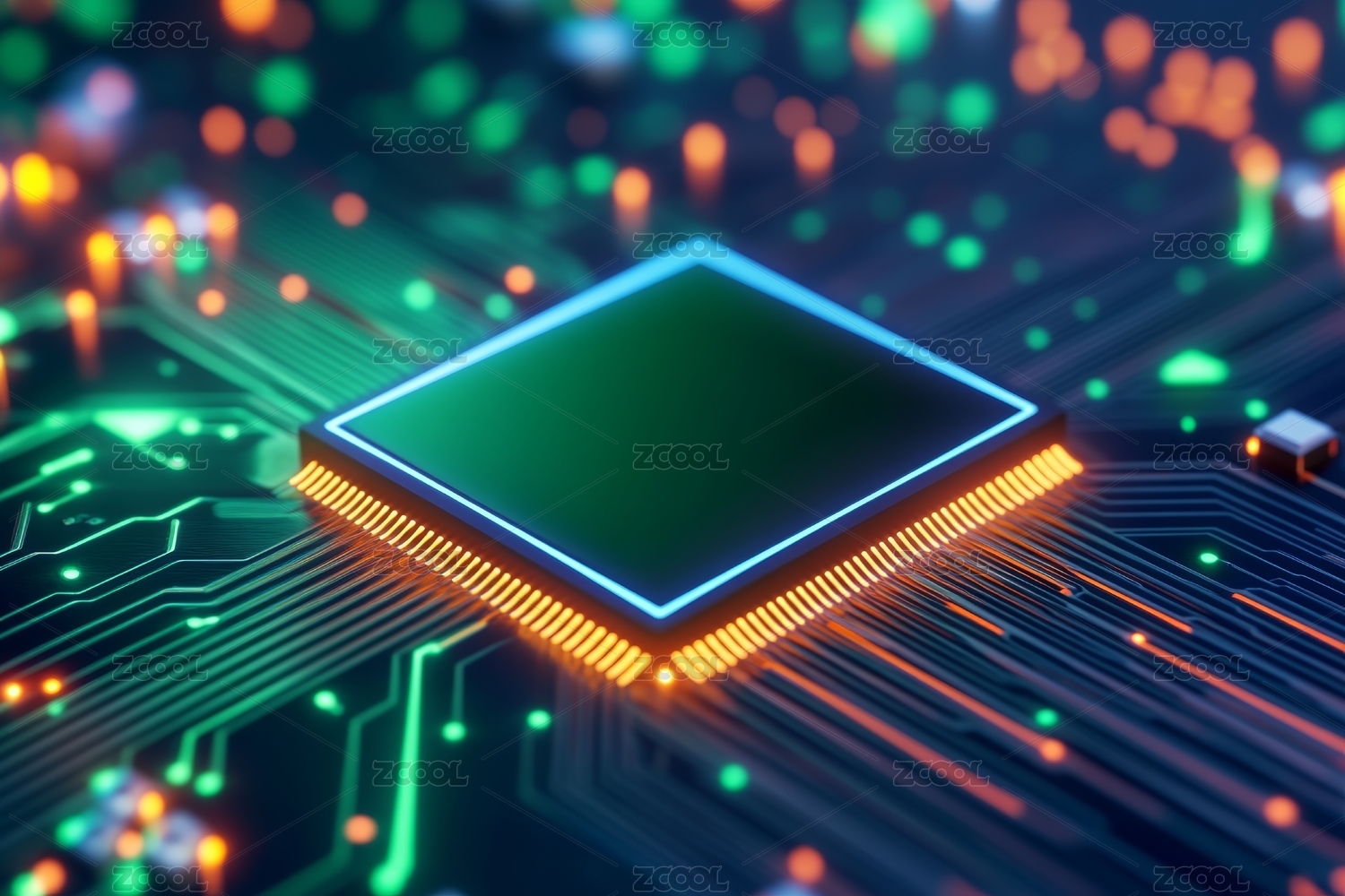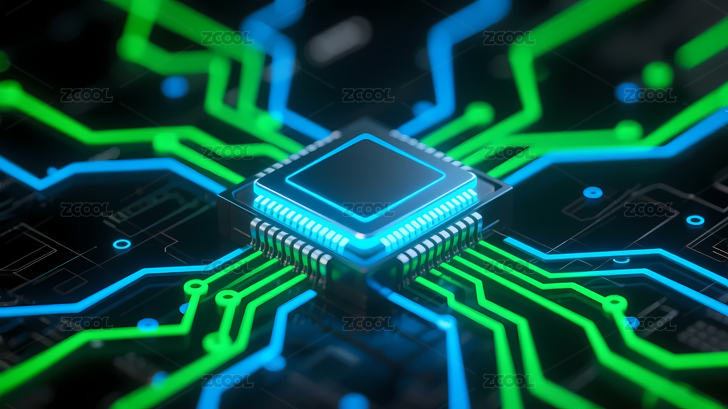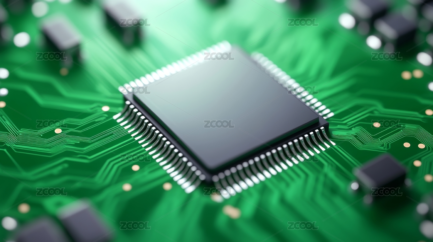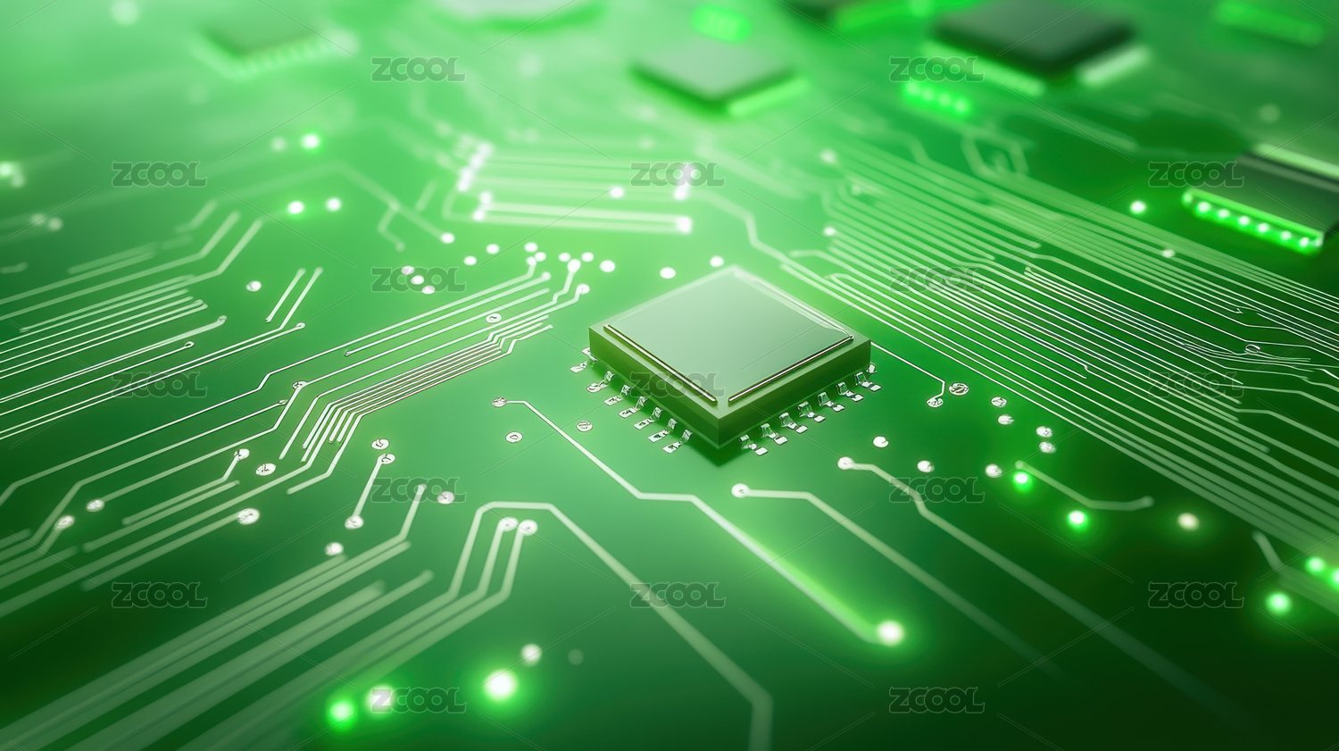 绿色芯片与电路科技感设计