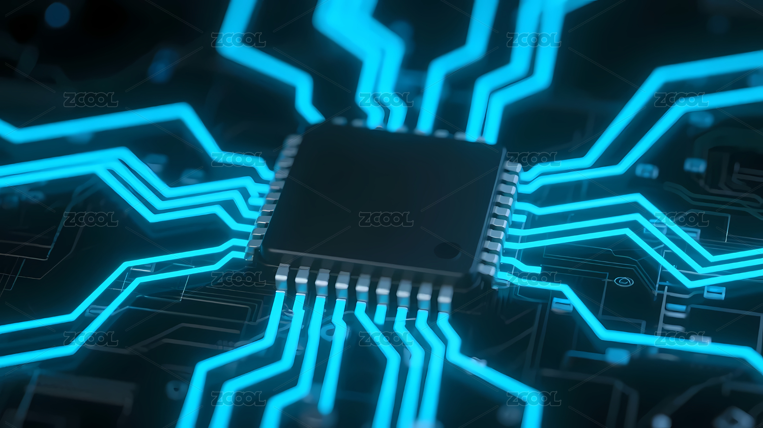 黑色芯片与电路板线条