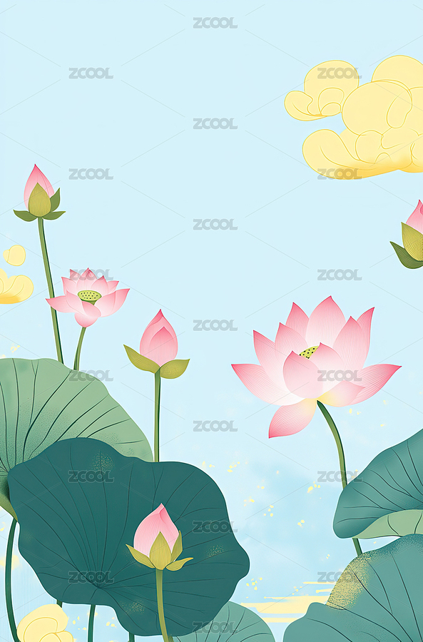 花,国风,自然,植物,插画,荷花,夏天,清新,夏至,国潮风