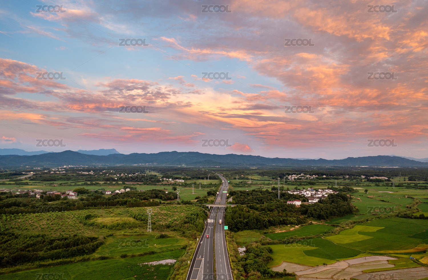 航拍中国安徽宣城市郎溪县水田上空火烧云