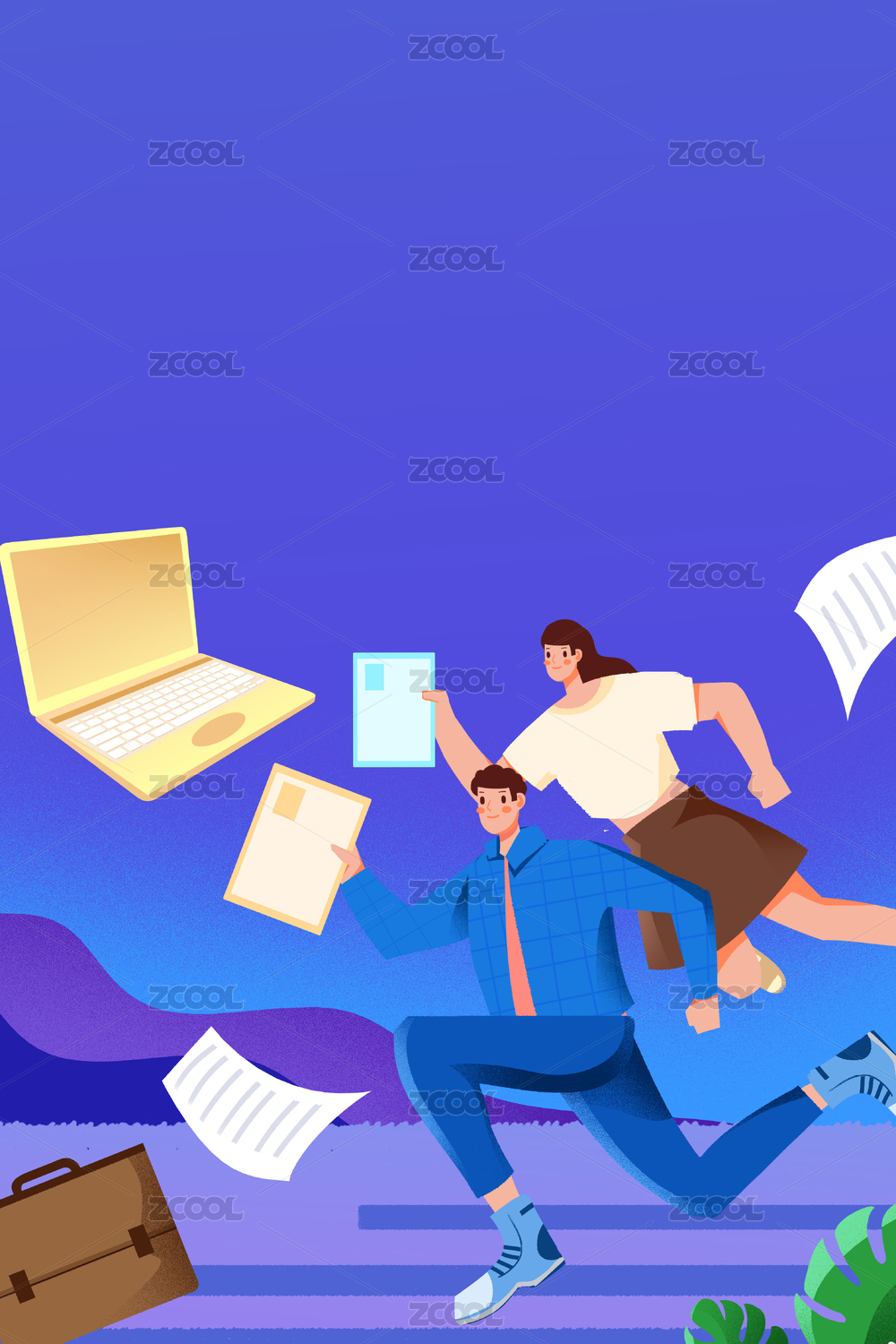 卡通蓝色手绘职场求职白领晋升闪屏海报插画