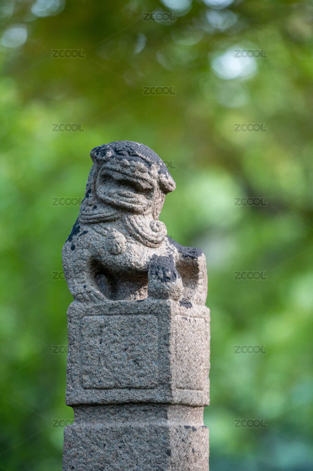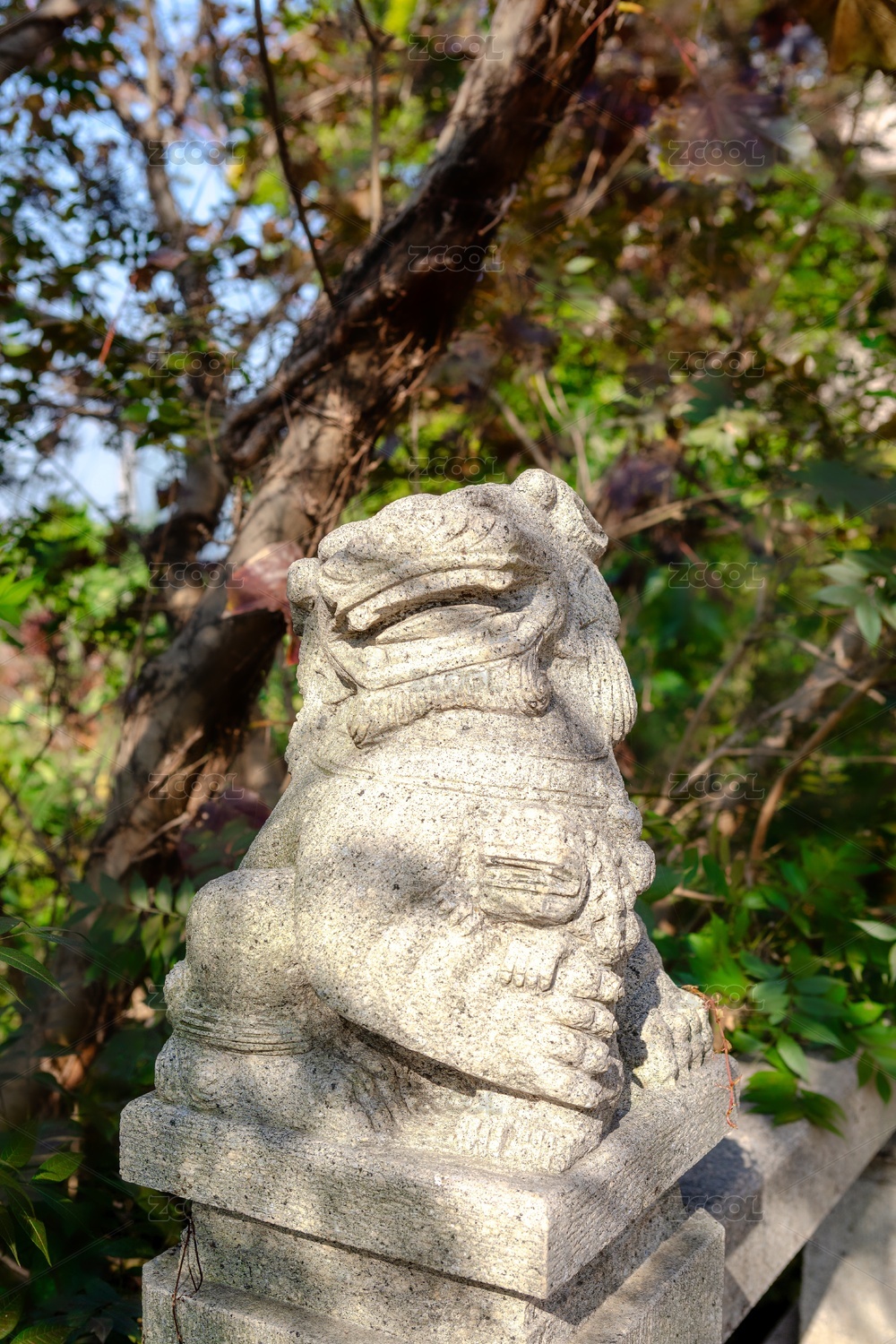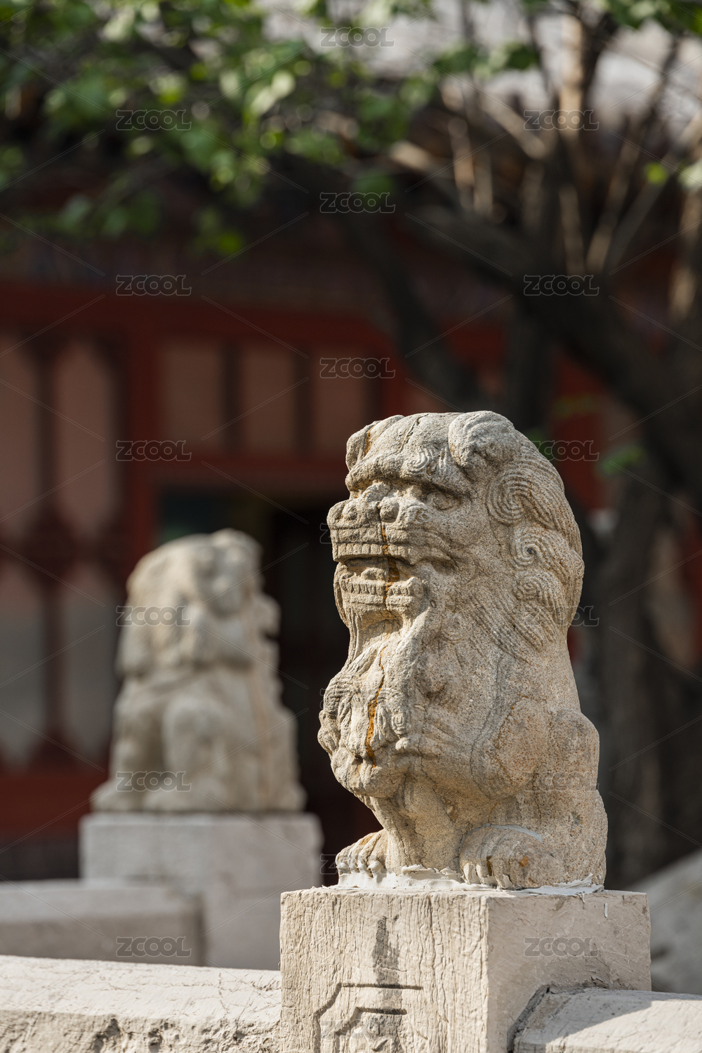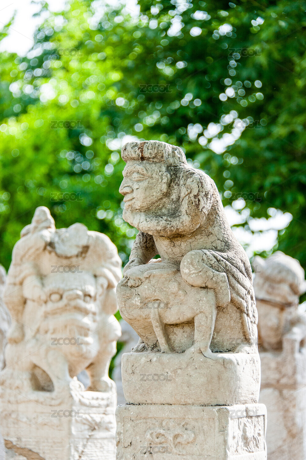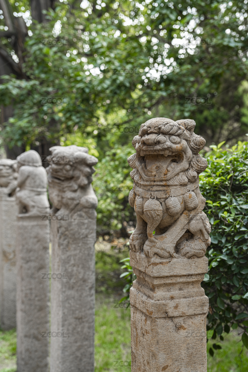 中国山西太原晋祠博物馆内的精美石刻石狮