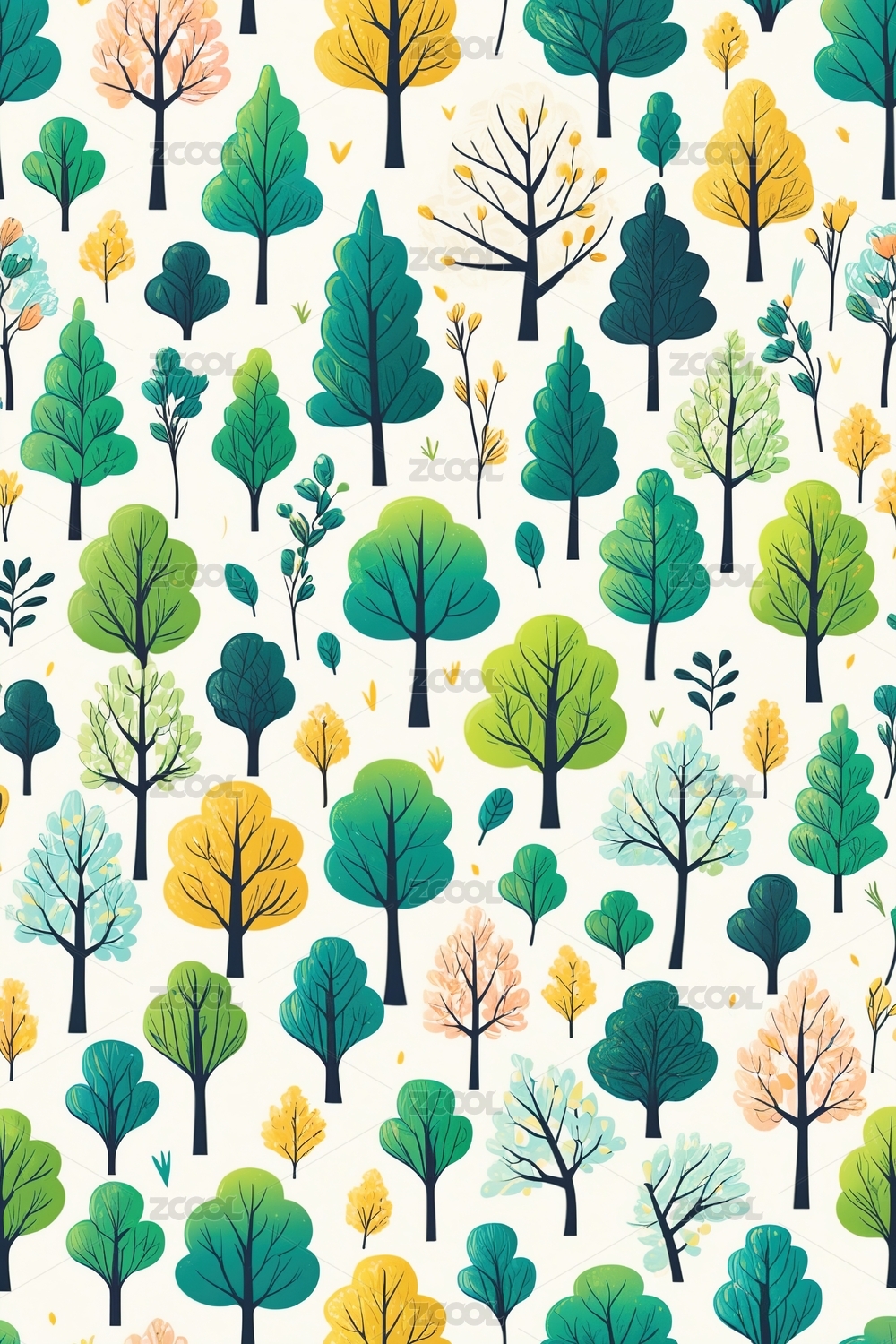 简约风格彩色树木图案