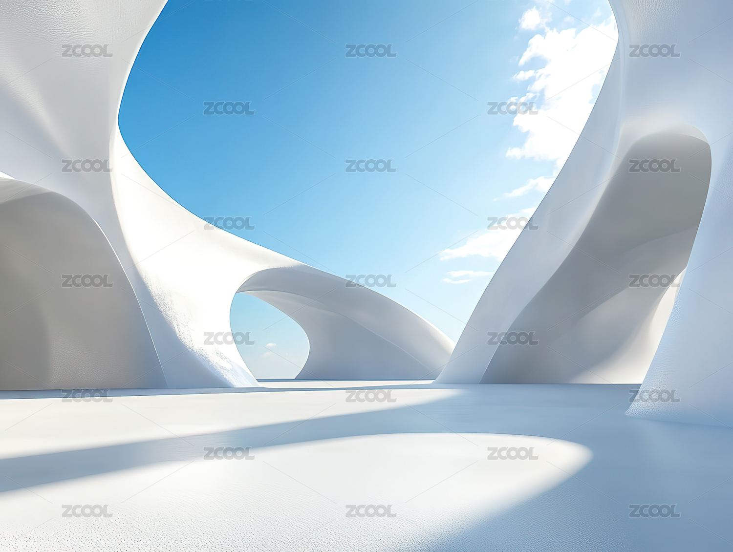 AI数字艺术,建筑,白色,创造力,天空,设计,未来,弯曲,抽象