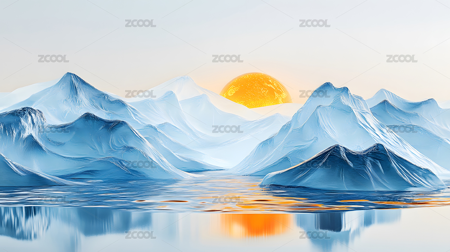 抽象极简山脉湖水背景