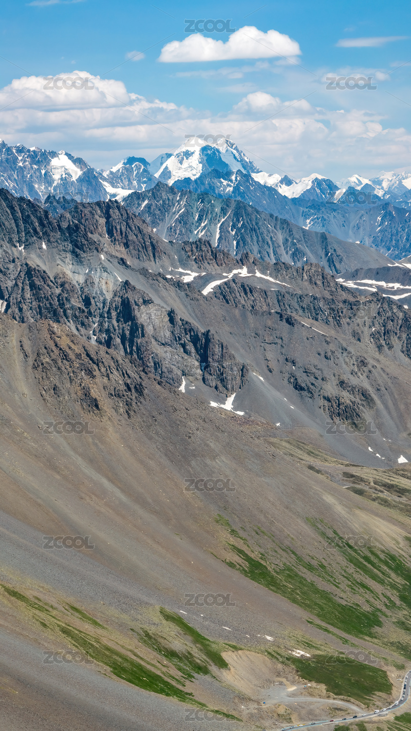 新疆,独库公路,克拉玛依,雪山,高原,公路风光,蓝天白云,自然景色,高山草甸,野外无人