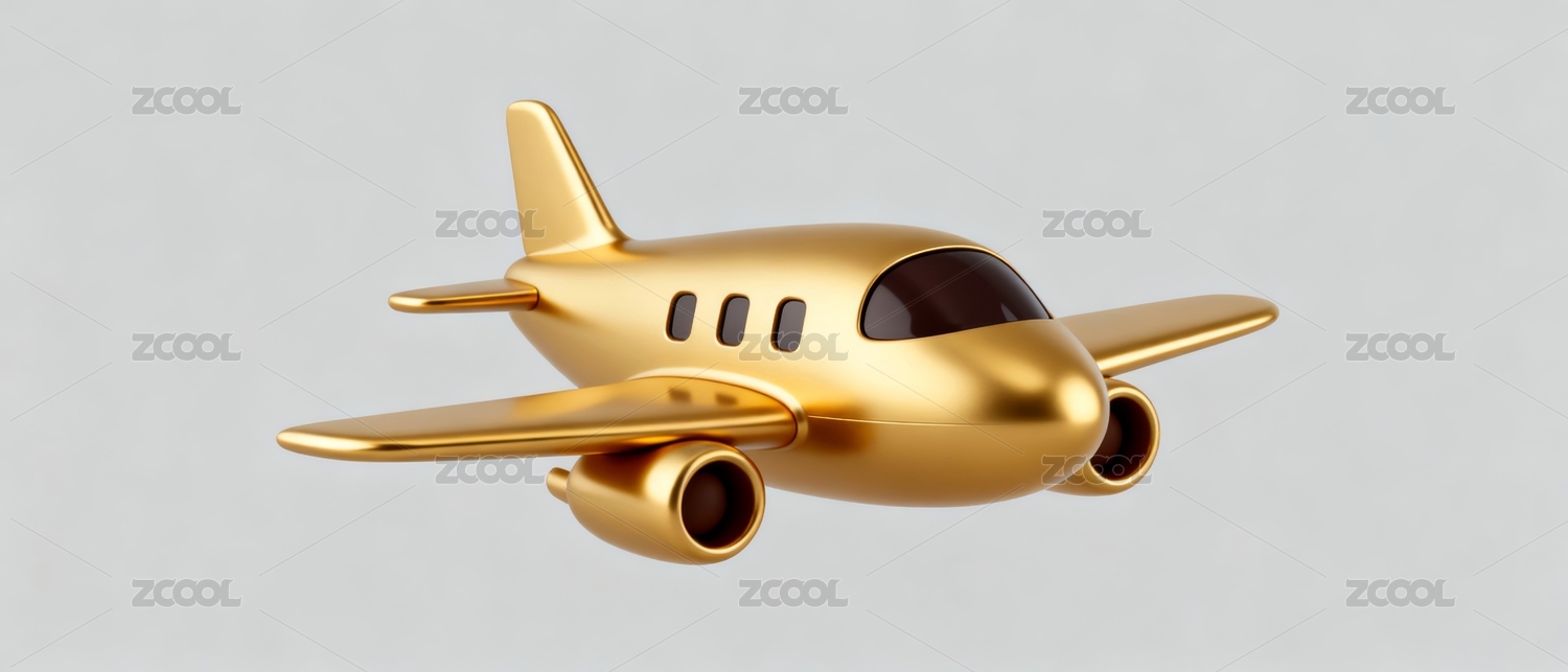 金色飞机精致航空展示场景