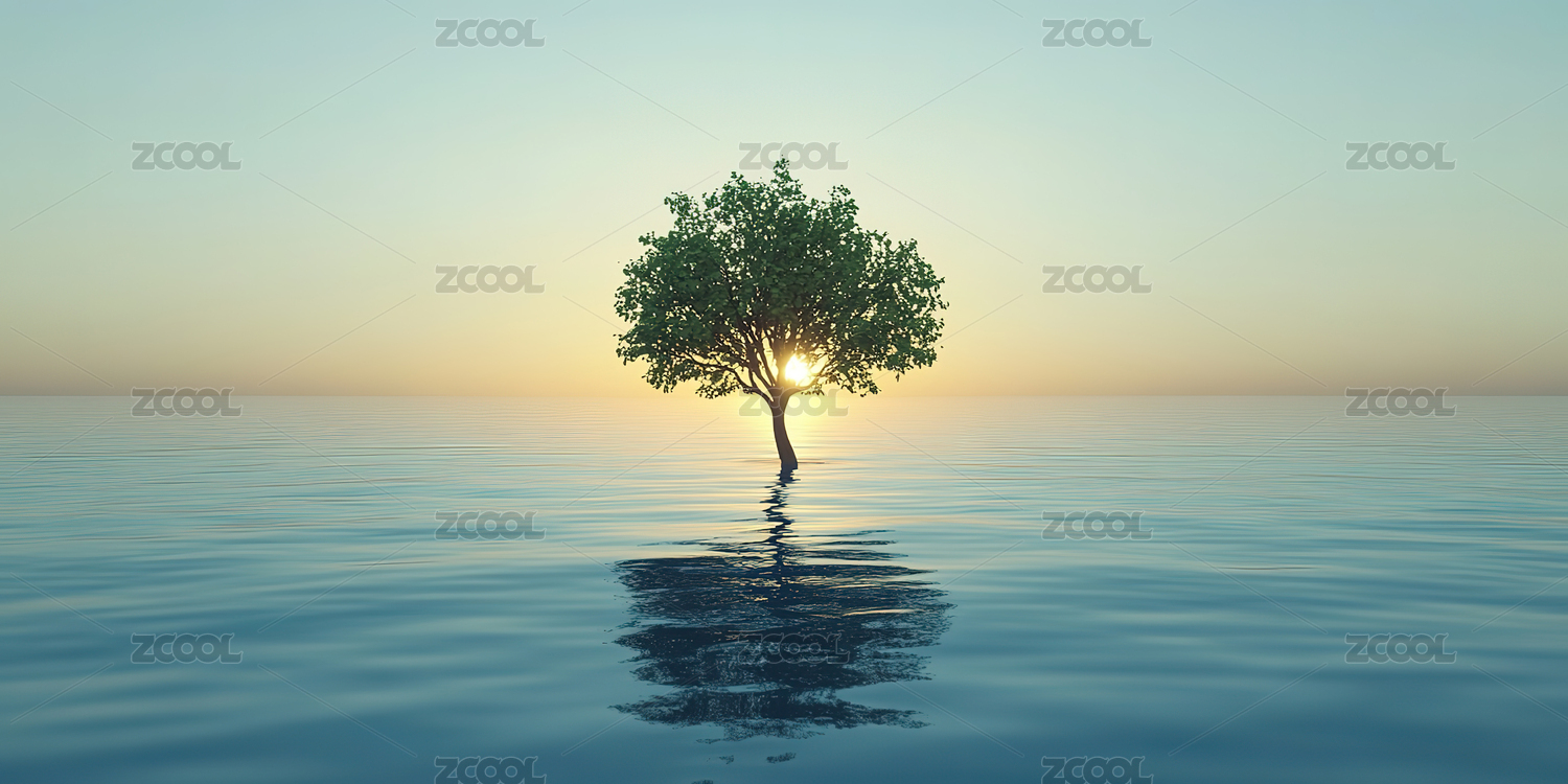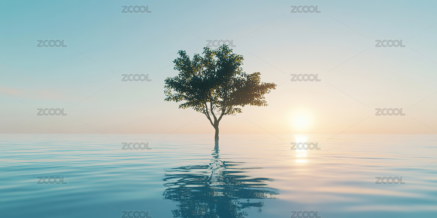 孤独的树在水面上