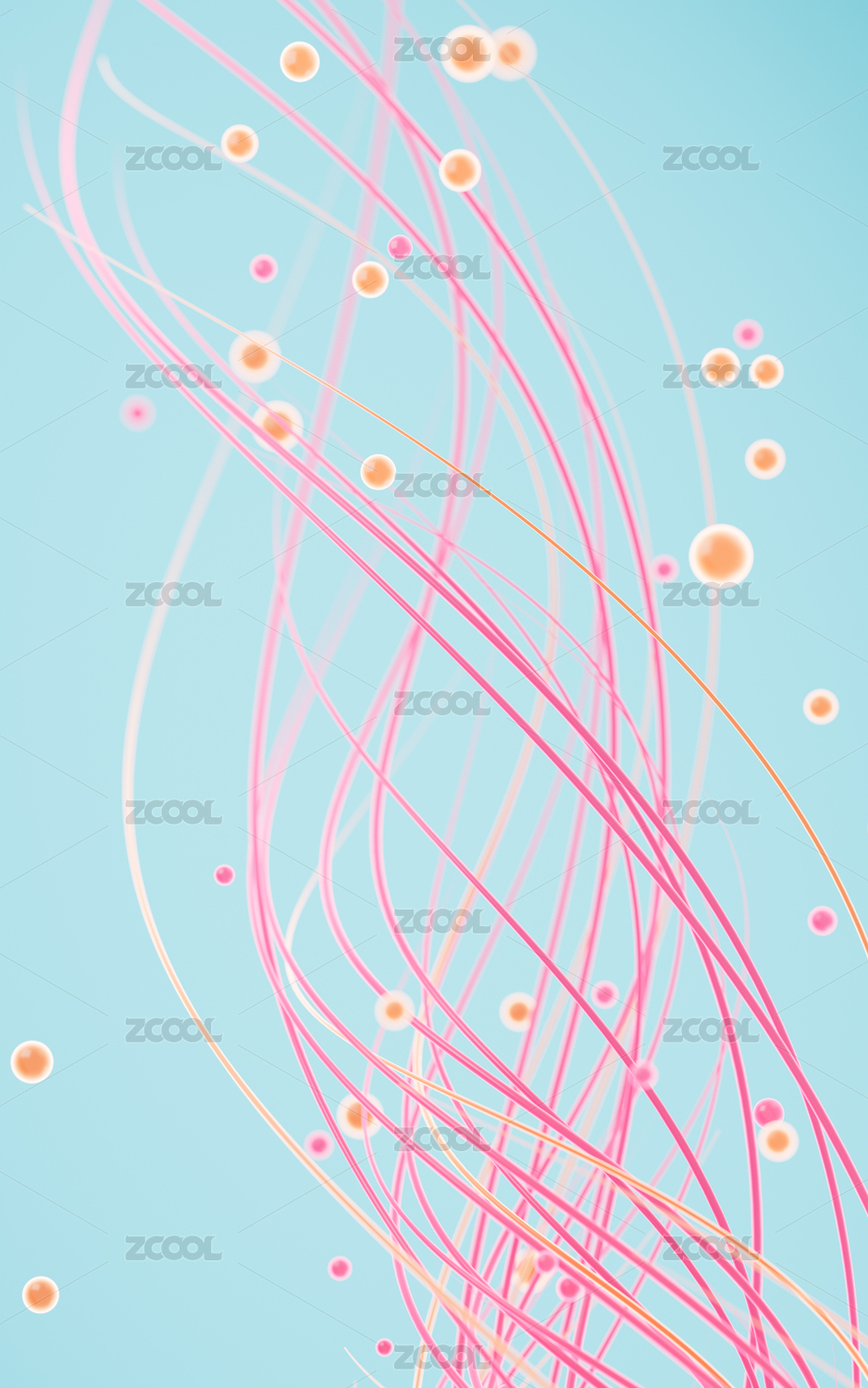 抽象曲线和小球背景3D渲染